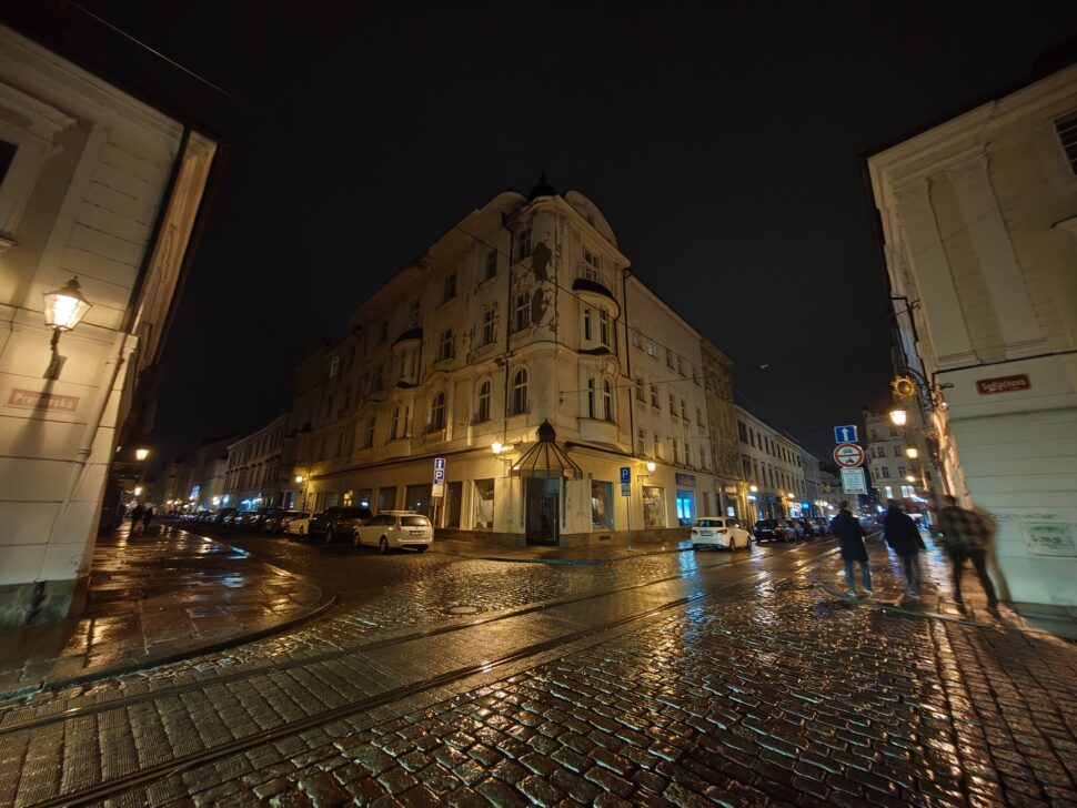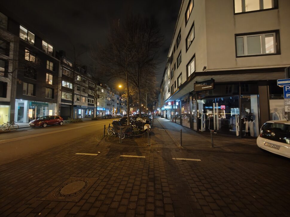 Selbst bei Nacht liefert die Linse noch gute Bilder ab, auch wenn dann deutlich weniger Details vorhanden sind. Hier zeigt sich allerdings oft ein leichter Gelbstich und eine komische Unschärfe am Rand. Bei Tag ist die UWW-Kamera exzellent, bei Nacht eher durchschnittlich.