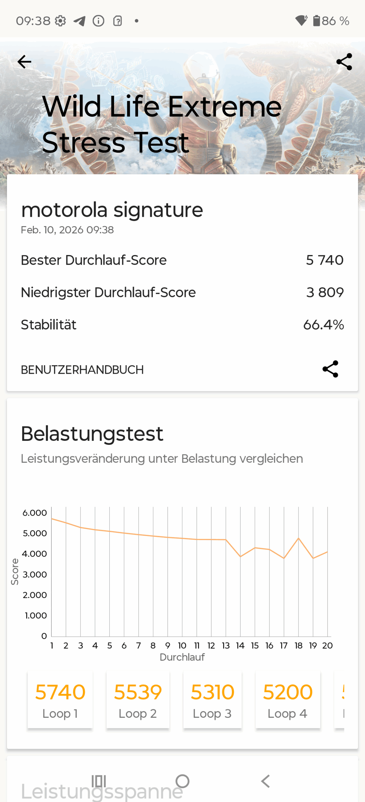 Klingt bis hierhin alles nach einem soliden Setup und die Performance im Alltag ist definitiv sehr gut. Motorola bewirbt zudem sein brandneues ArcticMesh Cooling System mit flüssigem Metall, Kupfergewebe und einer 6.002mm² großen Dampfkammer. Trotz dieser Marketing-Begriffe fällt das System unter Dauerlast in der Praxis durch. Unter Dauerlast zeigt sich ein starkes Thermal Throttling. Das Gerät verliert massiv an Power. CPU und GPU brechen nach einiger Zeit um rund 40% ihrer Leistung ein. Zudem wird der extrem dünne Metallrahmen dabei teils sehr heiß. Das ist unterm Strich kein gutes Ergebnis.