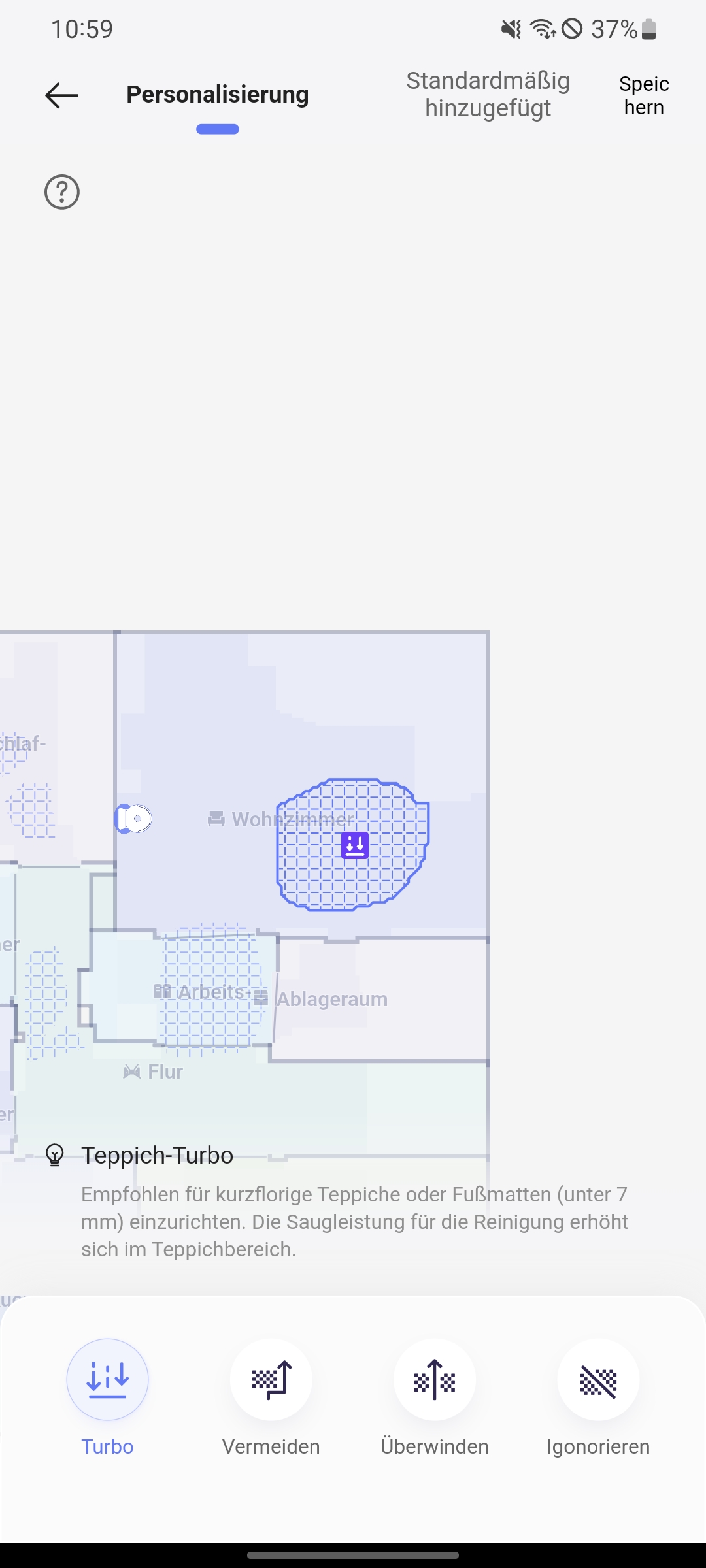 | treppenloser Modus | Falls Teppiche nicht korrekt erkannt werden |