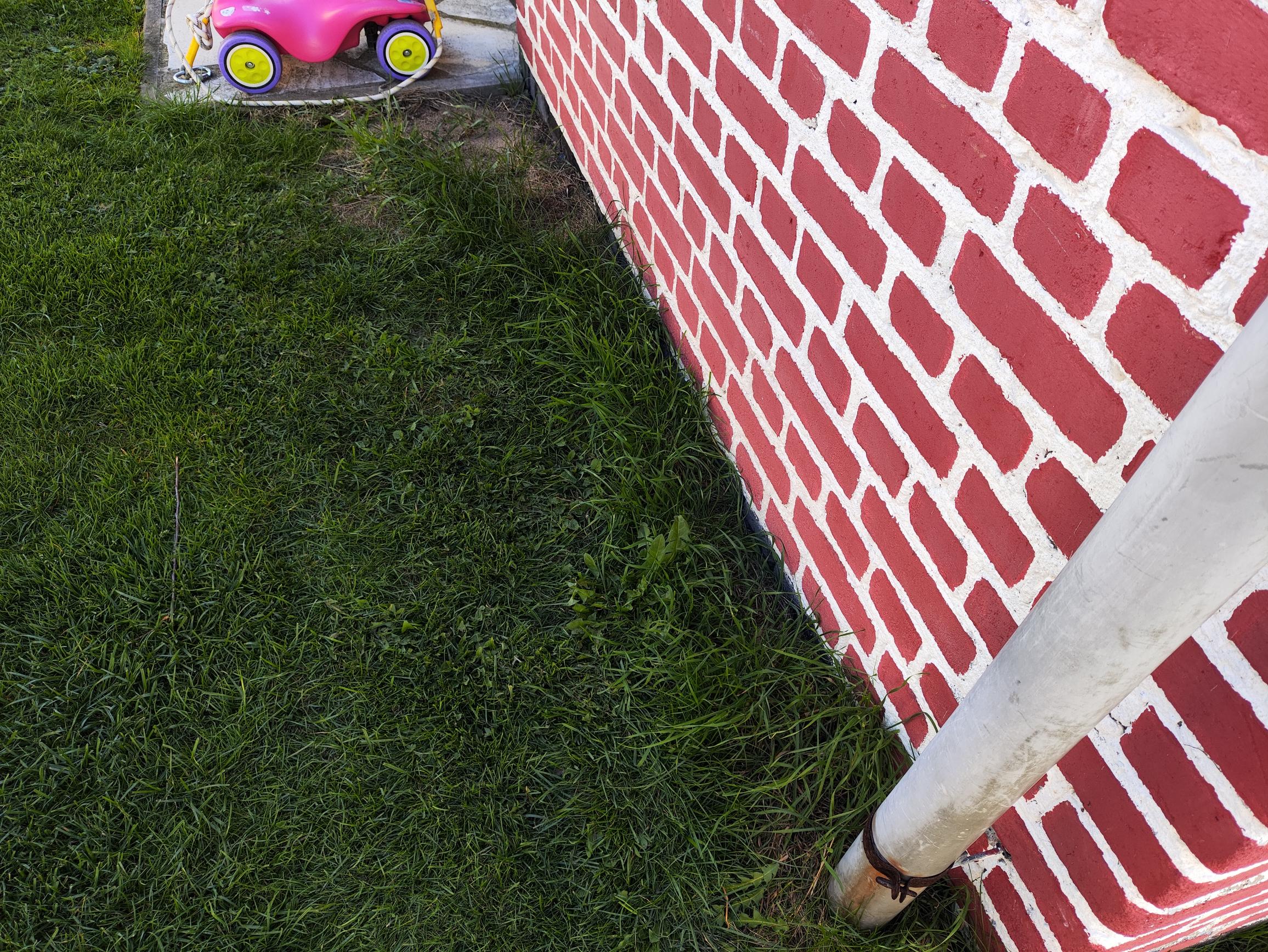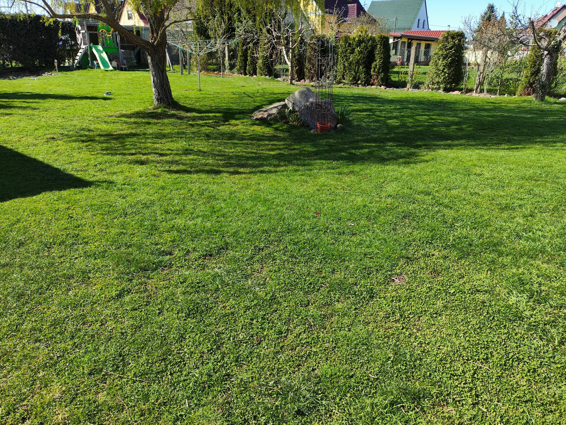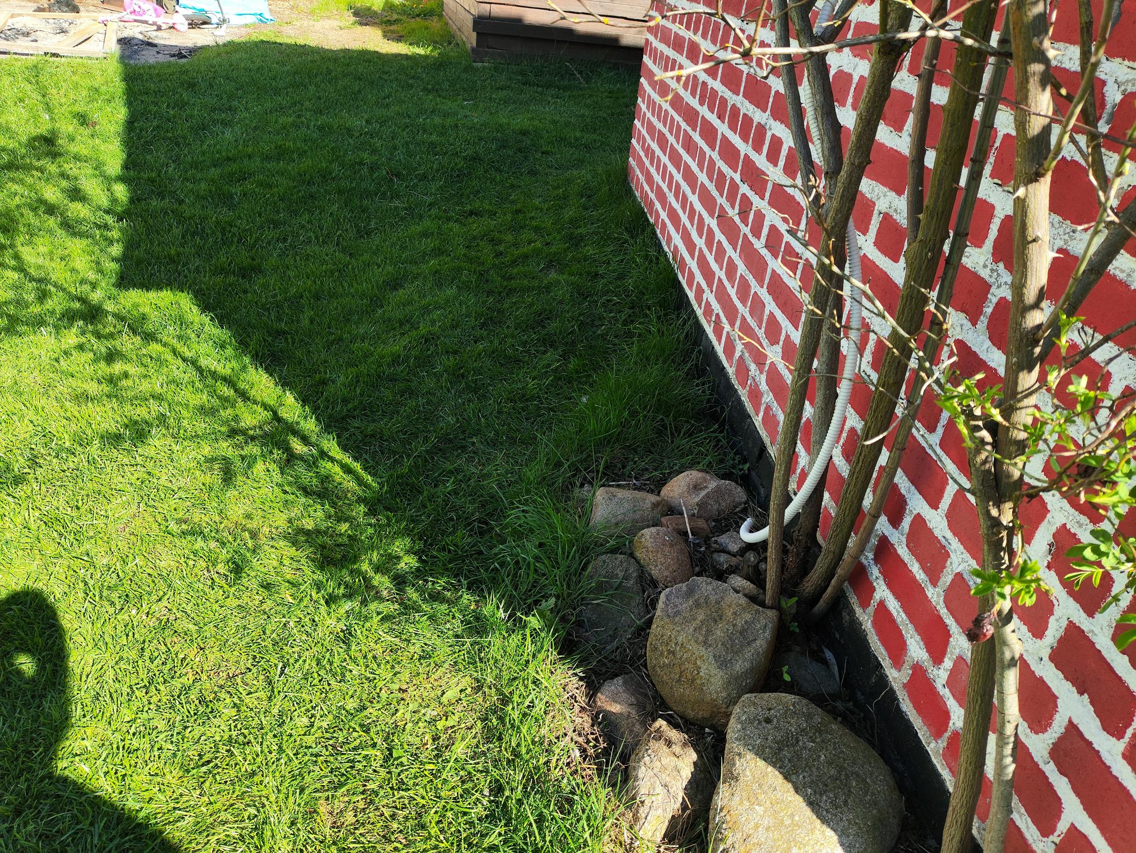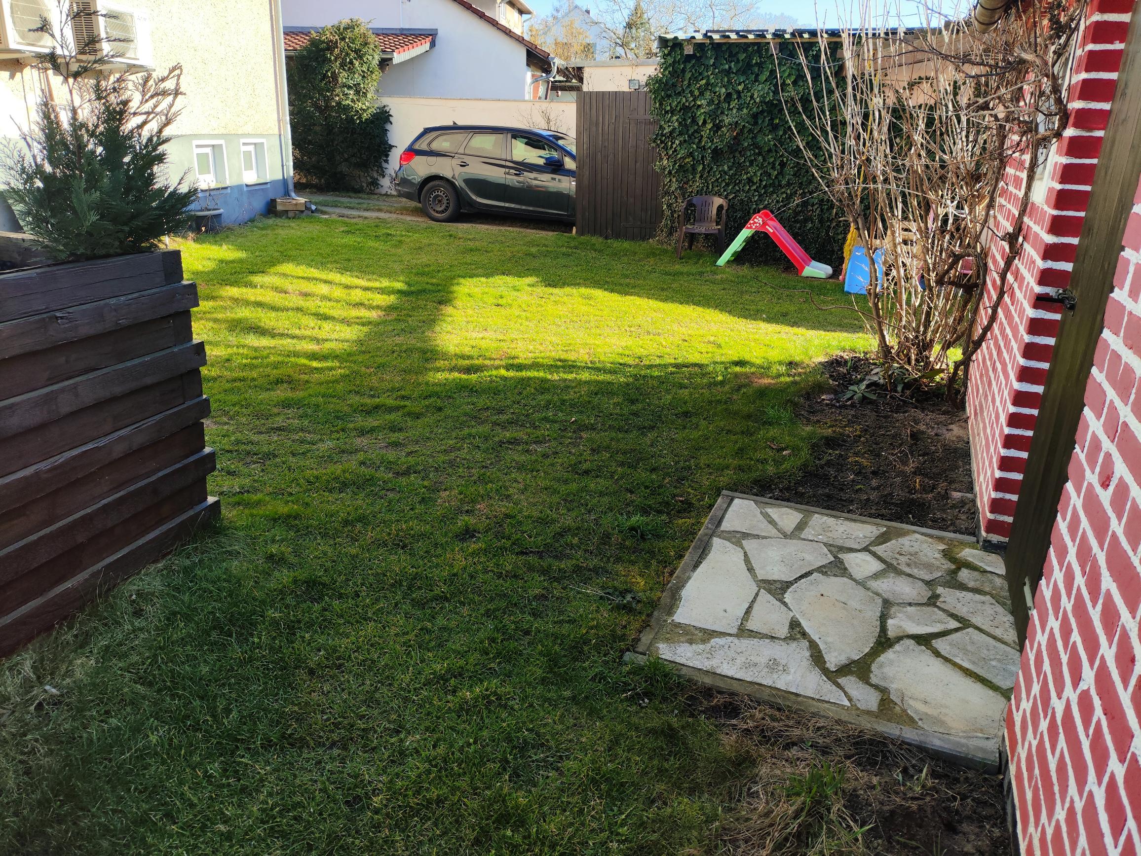 Für unseren Test wird der Mähroboter auf einer Rasenfläche von rund 460m² eingesetzt. Diese ist mit zahlreichen Hindernissen (Bäumen, Steinen, Beeten und Kinderspielzeugen) versehen und bietet unterschiedlichste Grundstücksgrenzen (Betonplatten, Granitsteine, Betonborde, Sandwege).
