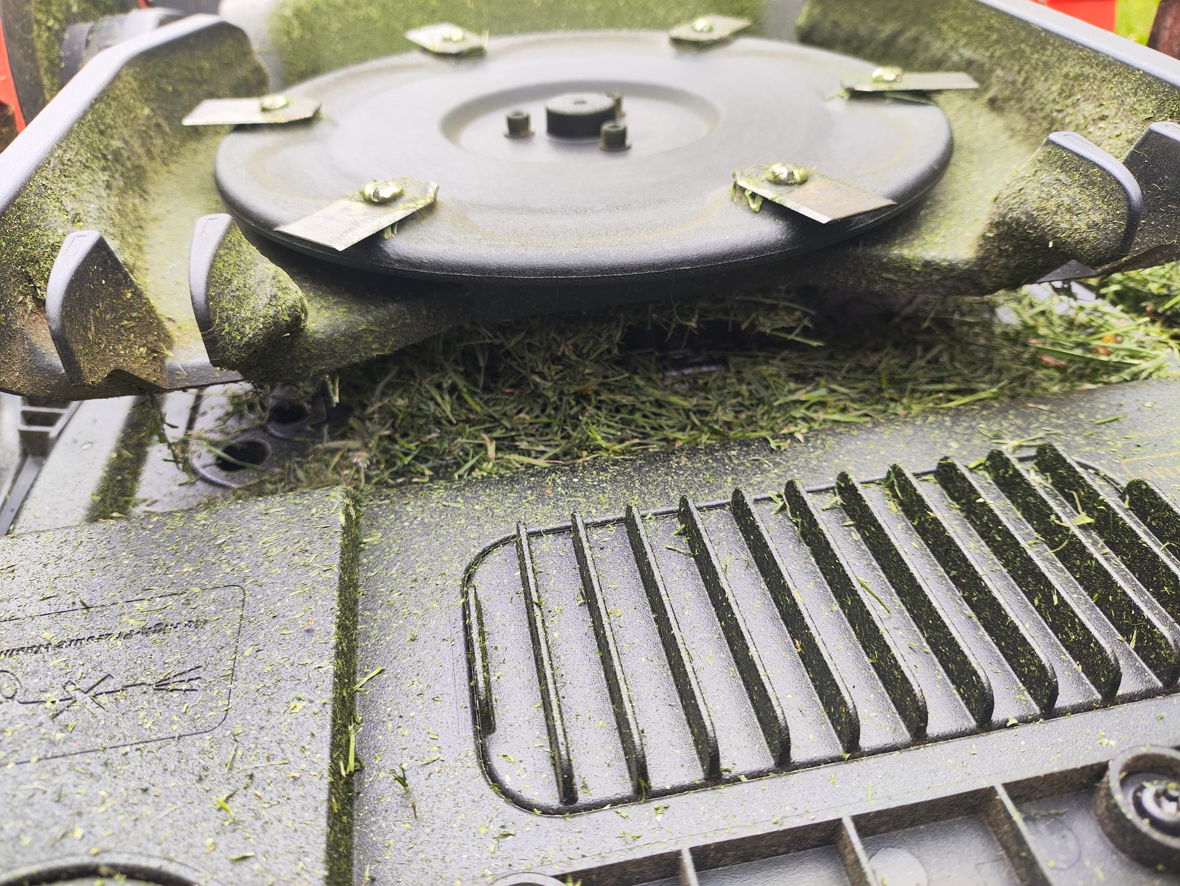 Nach einer Flächenleistung von rund 50 Betriebsstunden haben wir den Navimow einer ersten Wartung unterzogen. Die Grasreste auf dem Unterboden lassen sich sehr einfach mit einem Pinsel entfernen. Schaut unbedingt auch unter den Messerteller, da sich hier größere Mengen Gras ansammeln können.