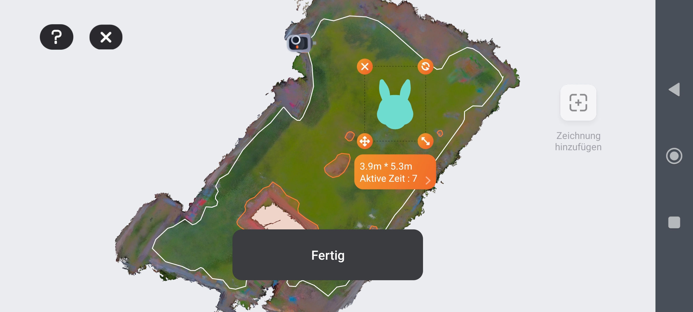 In der Kartenverwaltung können sowohl Mähzonen angelegt, zusammengeführt oder getrennt werden und für jede einzelne Mähzone die Schnitthöhe, der Schnittwinkel und das Kantenmähen angepasst werden. Bei Bedarf können auch Muster und Zeichnungen auf eurer Rasenfläche erstellt werden. Somit verwandelt sich euer Garten aus der Vogelperspektive in eine individuelle Leinwand.