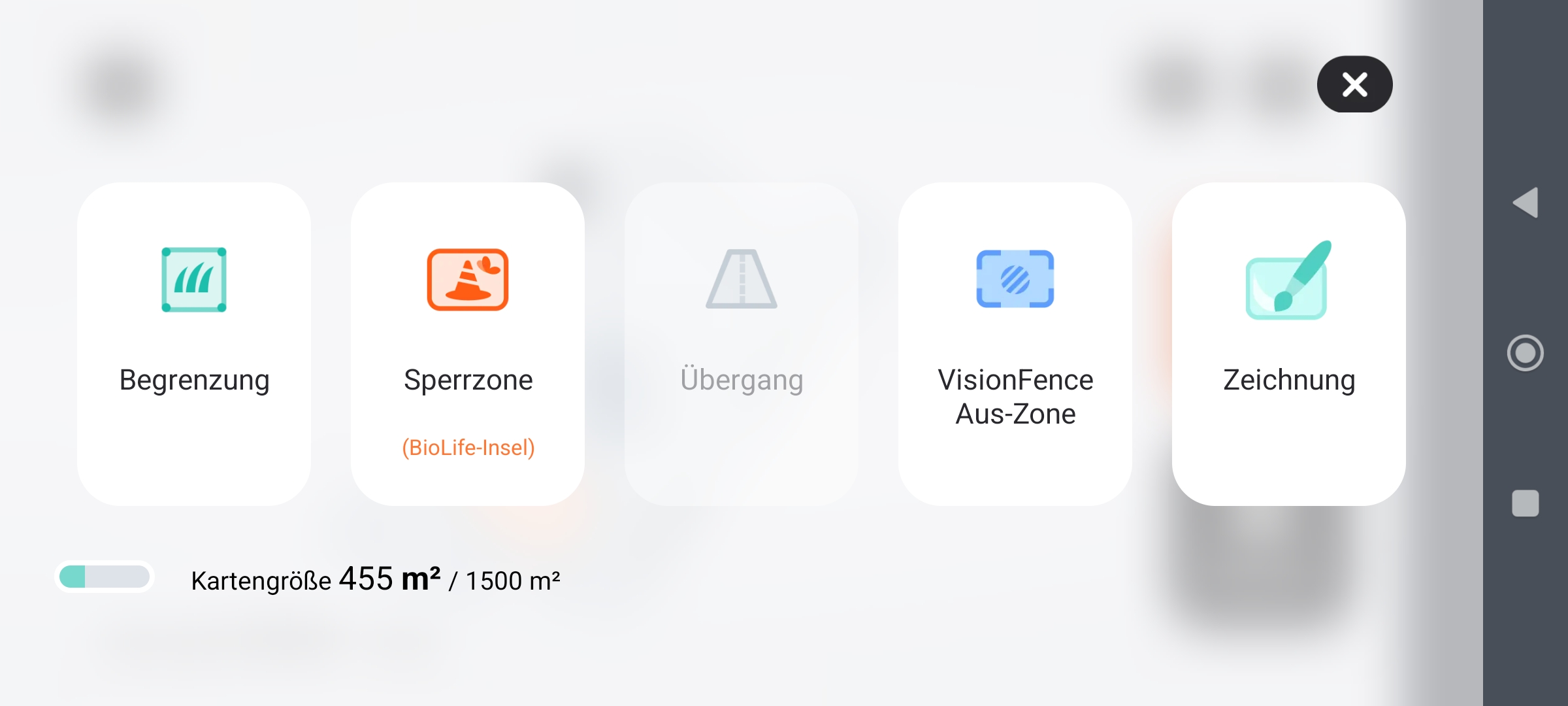 - Kartenverwaltung (Erstellen von Mähbereichen/No-Go-Zonen/Mäheinstellungen)
