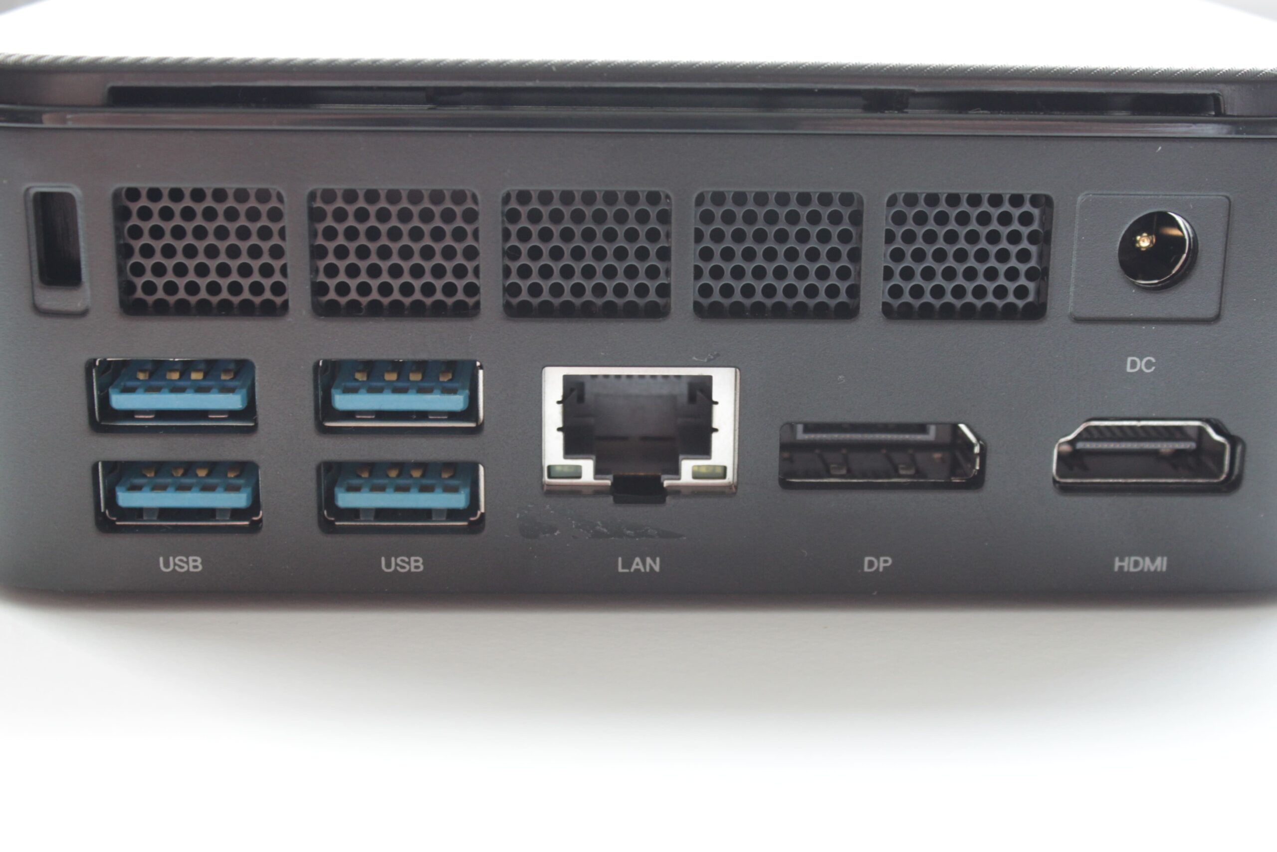 Auf der Rückseite wurde ebenfalls nicht gespart. Die vier USB-A-Anschlüsse bieten 5Gbit/s, was im Alltag immer noch schnell ausfällt. Der danebenliegende Ethernet-Anschluss bietet eine Geschwindigkeit von 1Gbit/s. Die beiden Display-Anschlüsse unterstützen ebenfalls 4K/60Hz wie der USB-C-Anschluss auf der Vorderseite. Dabei ist der DisplayPort in Version 1.4 und der HDMI-Anschluss in Version 2.0 integriert. Somit lassen sich bis zu drei Displays gleichzeitig betreiben, was den NiPoGi zu einer echten Workstation macht.