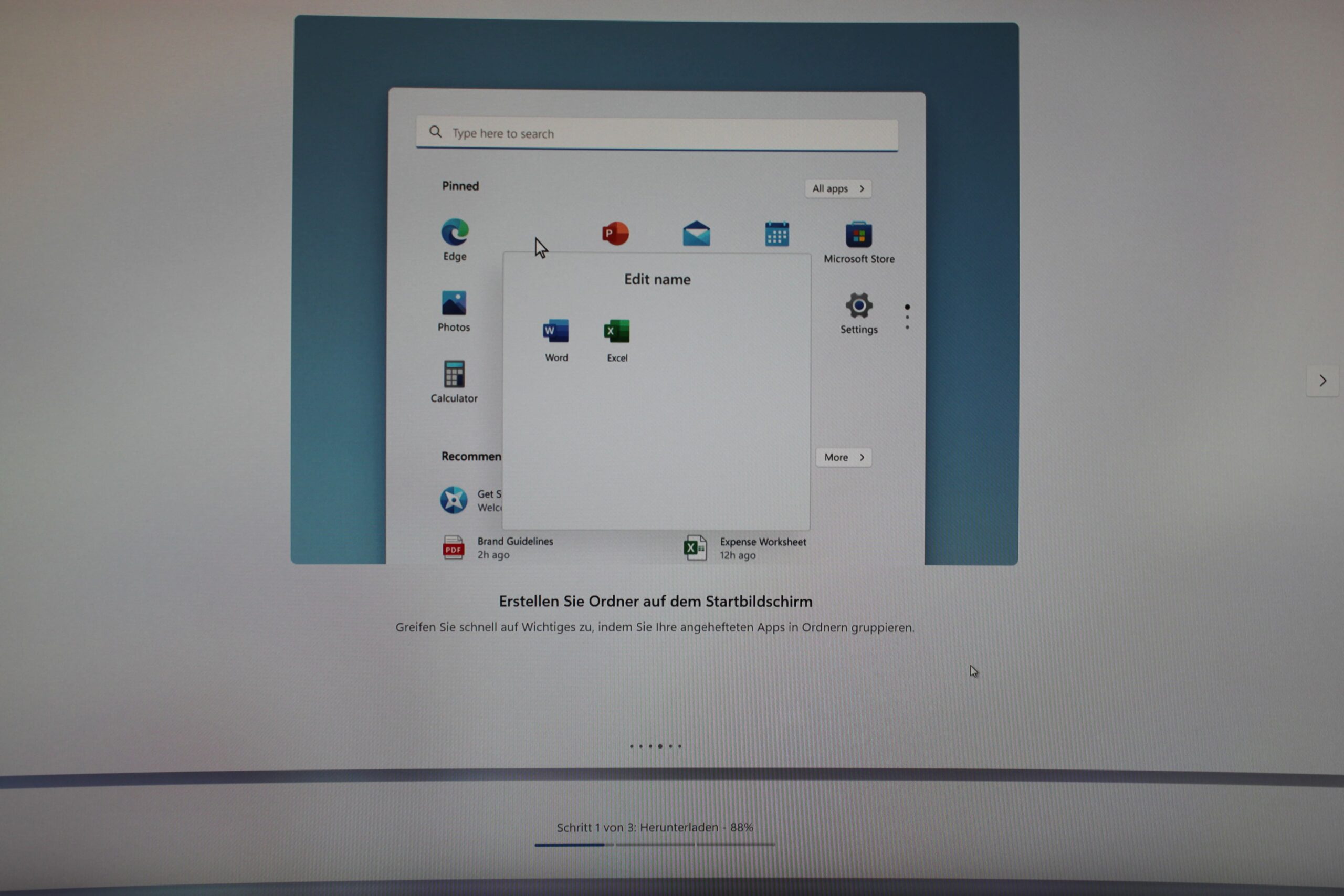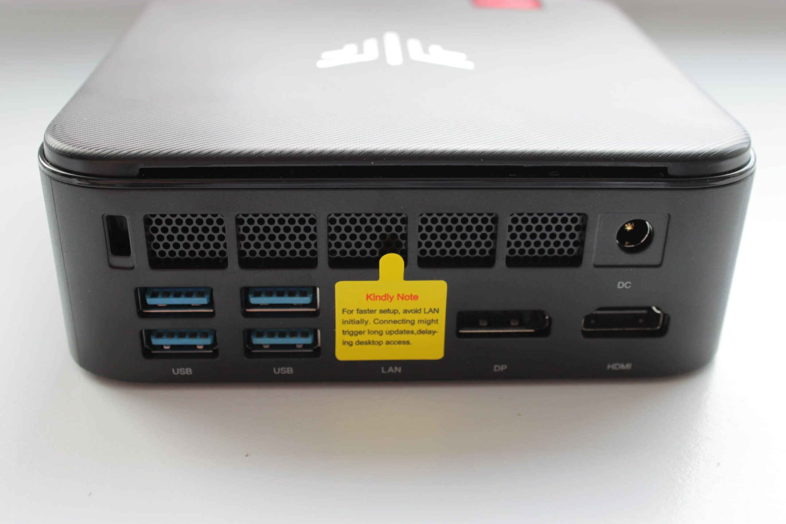 Der NiPoGi E3B wird mit einem vorinstallierten und aktivierten Windows 11 Pro geliefert. Die Installation verläuft problemlos, dauert aber etwas länger, falls Updates anstehen. Der Hinweis auf dem Ethernet-Anschluss hilft dabei nicht, da ihr euch standardmäßig sonst per WLAN verbinden müsst.