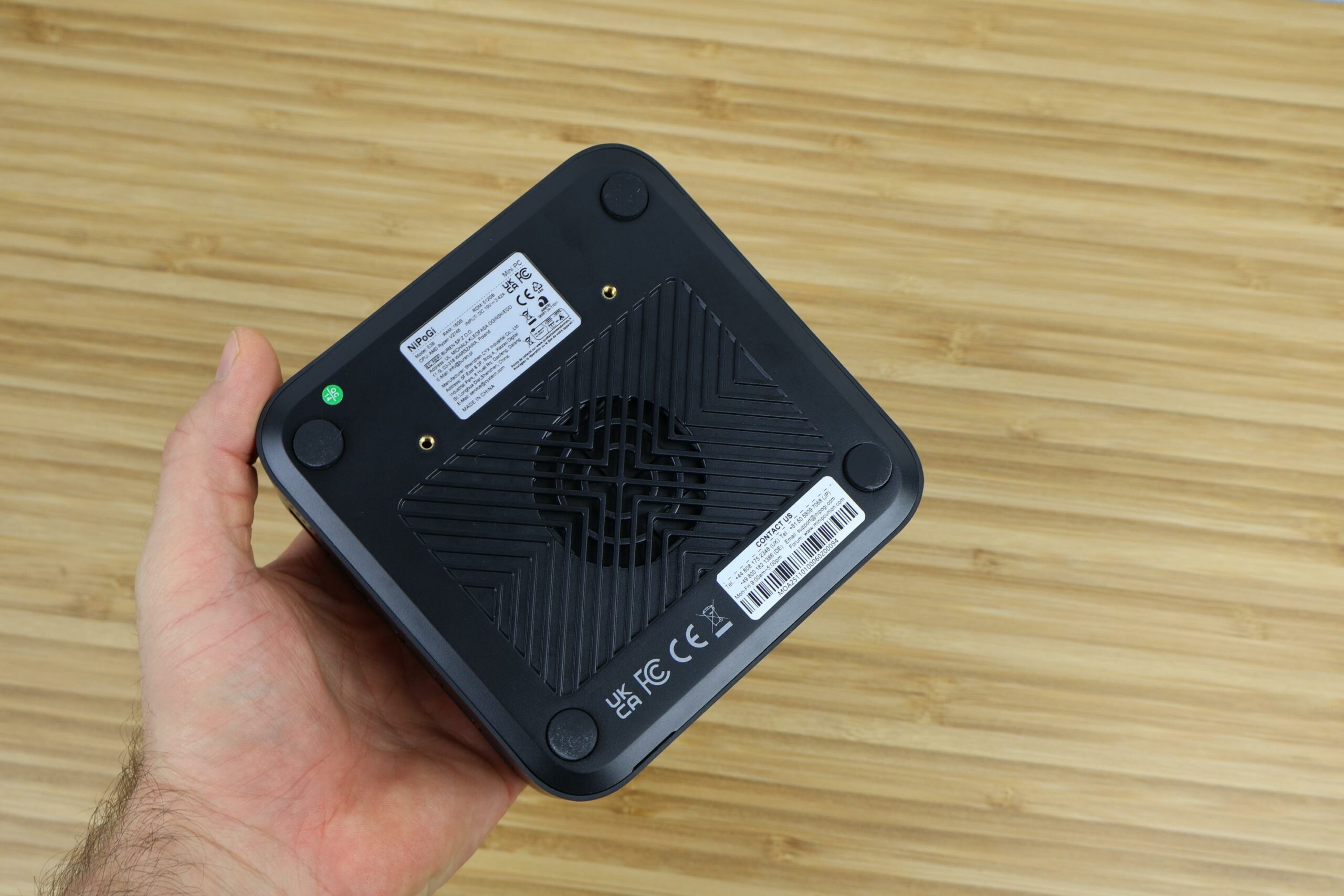 Der NiPoGi E3B folgt dem typischen Mini-PC-Format: praktisch, quadratisch, gut. Mit Abmessungen von 128 x 128 x 41 Millimeter ist er angenehm klein und lässt sich dank der mitgelieferten VESA-Halterung sogar hinter einem Monitor verstecken. So könnt ihr euch einfach einen All-in-one-PC in einem DIY-Projekt zusammenbasteln. Achtet dabei jedoch darauf, dass der Monitor die passende Aufnahme bietet. Höhenverstellbare Monitore haben diese in der Regel nicht.