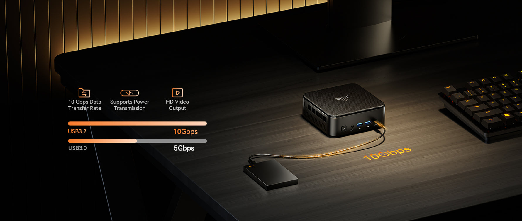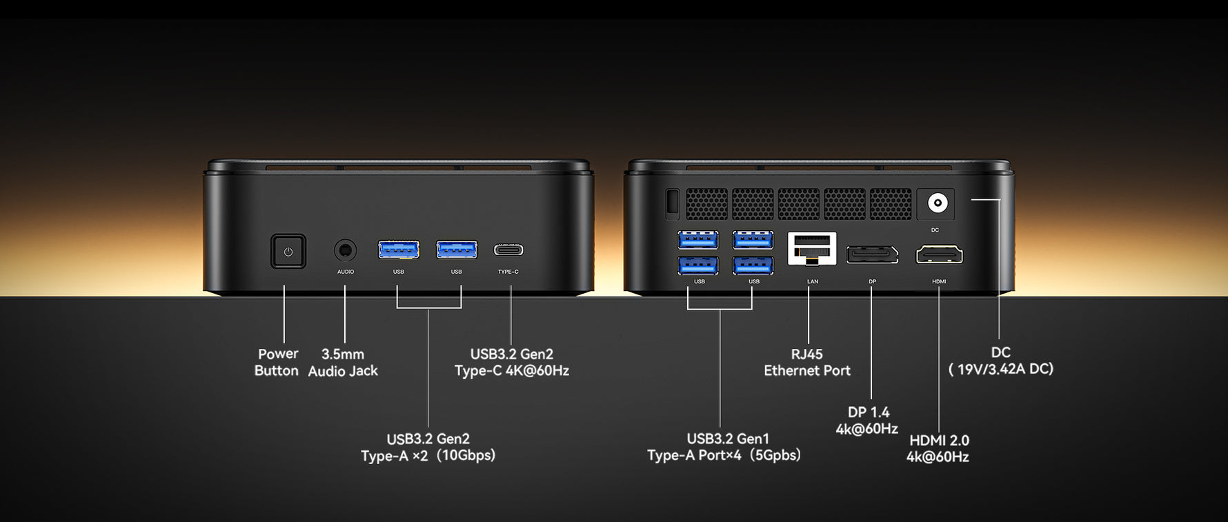 Nun kommen wir zu den inneren Werten des NiPoGi E3B. Bei der Konnektivität und den Anschlüssen macht der Hersteller keine halben Sachen, sondern schöpft aus dem Vollen.