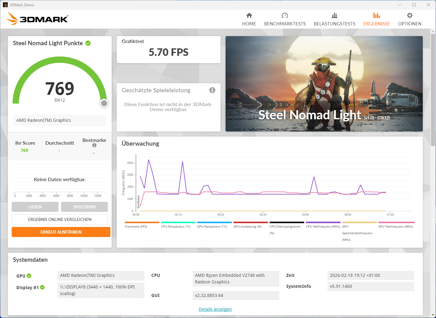 Zu den Benchmarks lässt sich wenig hinzufügen, da die Ergebnisse für sich sprechen. Schwach fällt die Gaming-Leistung aus, da sich selbst anspruchslose Spiele wie League of Legends auf höchster Einstellung nicht mit 60FPS spielen lassen. Anspruchsvolle Spiele sind nicht spielbar. Bei Lost Ark geht bereits im Händlerviertel der Spaß verloren. Dungeons gleichen einer PowerPoint-Präsentation.