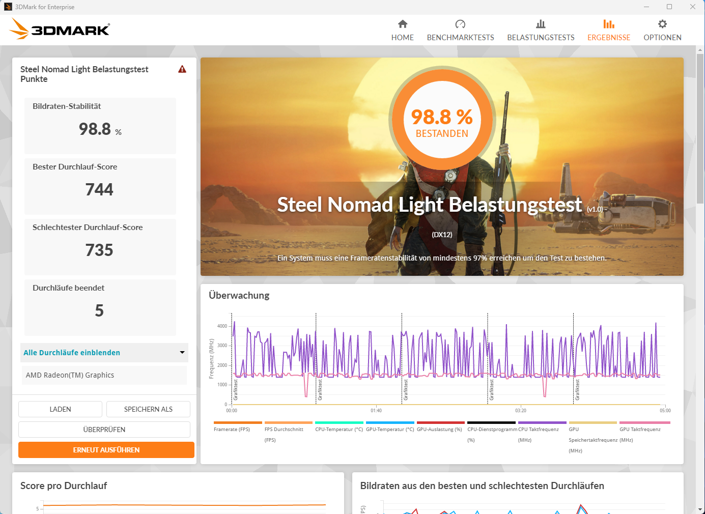 - AMD Ryzen 5 7430U: 6 Kerne → deutlich geringere Gesamtleistung