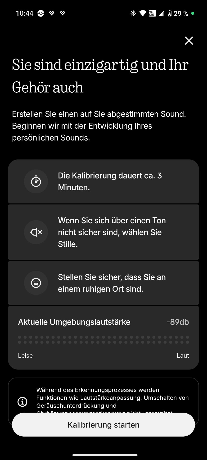 Die Nothing-X-App bietet einen umfangreichen Equalizer. Wenn ihr euch die Zeit nehmt, könnt ihr die basslastige Werkseinstellung nach eigenem Geschmack anpassen und so die Mitten wieder etwas mehr in den Vordergrund rücken. Insgesamt stehen vier Varianten zur Wahl: ein einfacher Equalizer, der sehr umfangreiche EQ, ein geführter Soundtest und ihr habt auch die Möglichkeit, andere Equalizer der Community herunterzuladen: