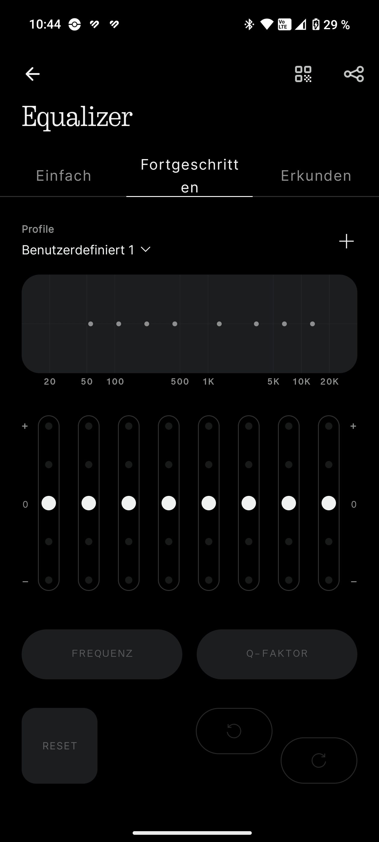 - Equalizer: Ein fortschrittlicher 8-Band-EQ erlaubt eine detaillierte Klanganpassung. Eigene Profile können erstellt und sogar per QR-Code mit anderen geteilt werden.