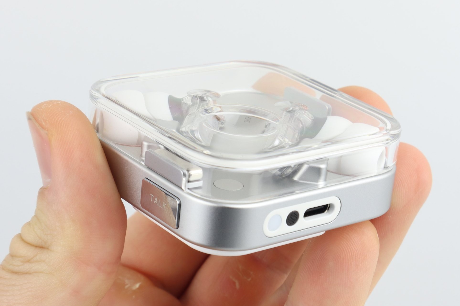 Das Case wirkt mit dem Rahmen aus Aluminium nun hochwertiger. Am halbdurchsichtigen Design hält Nothing natürlich fest. Das Metall verleiht dem Case nicht nur eine edlere Haptik, sondern auch ein spürbar höheres Gewicht. Mit 61 Gramm ist es fast 10 Gramm schwerer als das des Vorgängers (51,9 Gramm). Das mag nicht nach viel klingen, trägt aber zum soliden und wertigen Gefühl in der Hand bei. Die Abmessungen bleiben mit 56 x 55,5 x 22,25 Millimeter nahezu identisch.