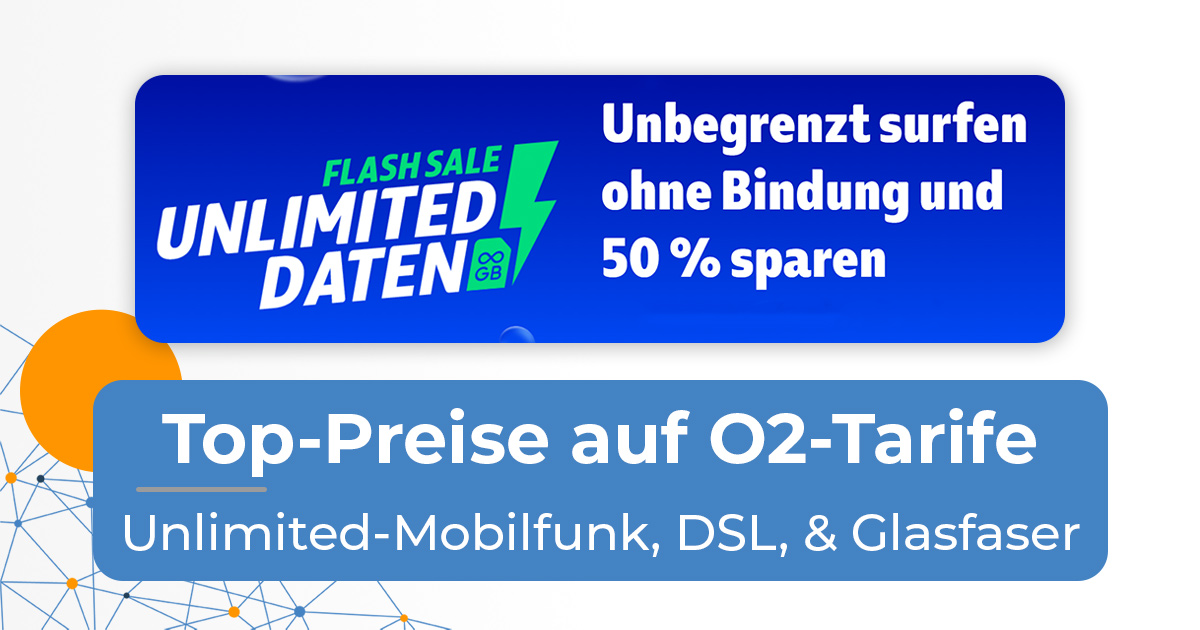 O2 Flash Sale: O2 Unlimited Max & Internet Tarife monatlich kündbar ab 14,99€/Monat