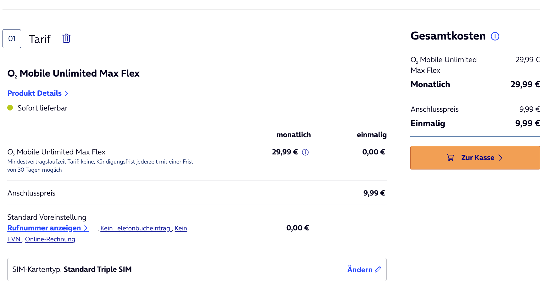 Der Clou an diesem Black Deal ist die Beseitigung der üblichen Hürden. Normalerweise bestraft O2 die Flexibilität der monatlich kündbaren Tarife mit einem hohen Anschlusspreis von fast 40€. Dieser fällt jetzt weg – beziehungsweise schrumpft auf sehr faire 9,99€.