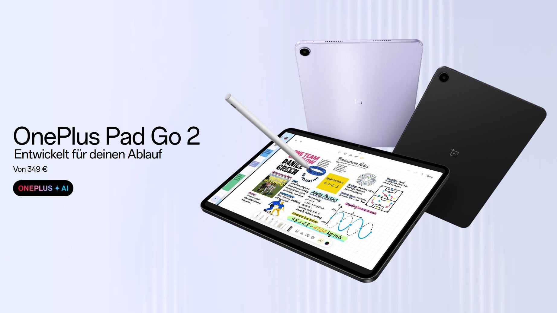 OnePlus erweitert das Tablet-Portfolio um das OnePlus Pad Go 2. Das Gerät positioniert sich als Allrounder für Surfen, Medien sowie Kreativität und bietet im Vergleich zum ersten Modell Verbesserungen bei LCD-Panel, Akku und Rechenleistung. Der MediaTek Dimensity 7300 Ultra bietet ein solides Leistungslevel, der Akku fällt mit 10.050mAh ordentlich aus, das LCD-Panel misst 12,1 Zoll und es steht eine 5G-Variante bereit.