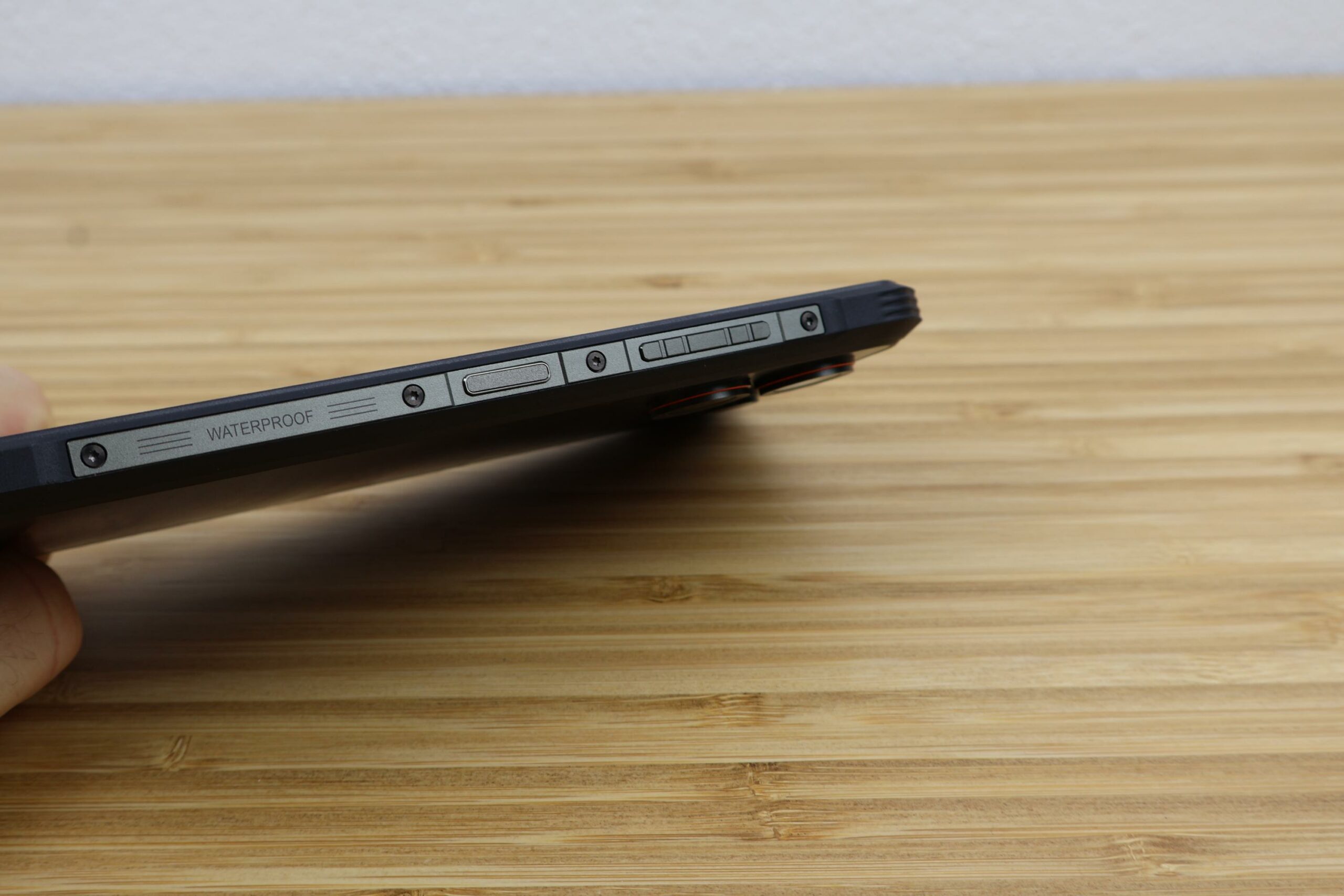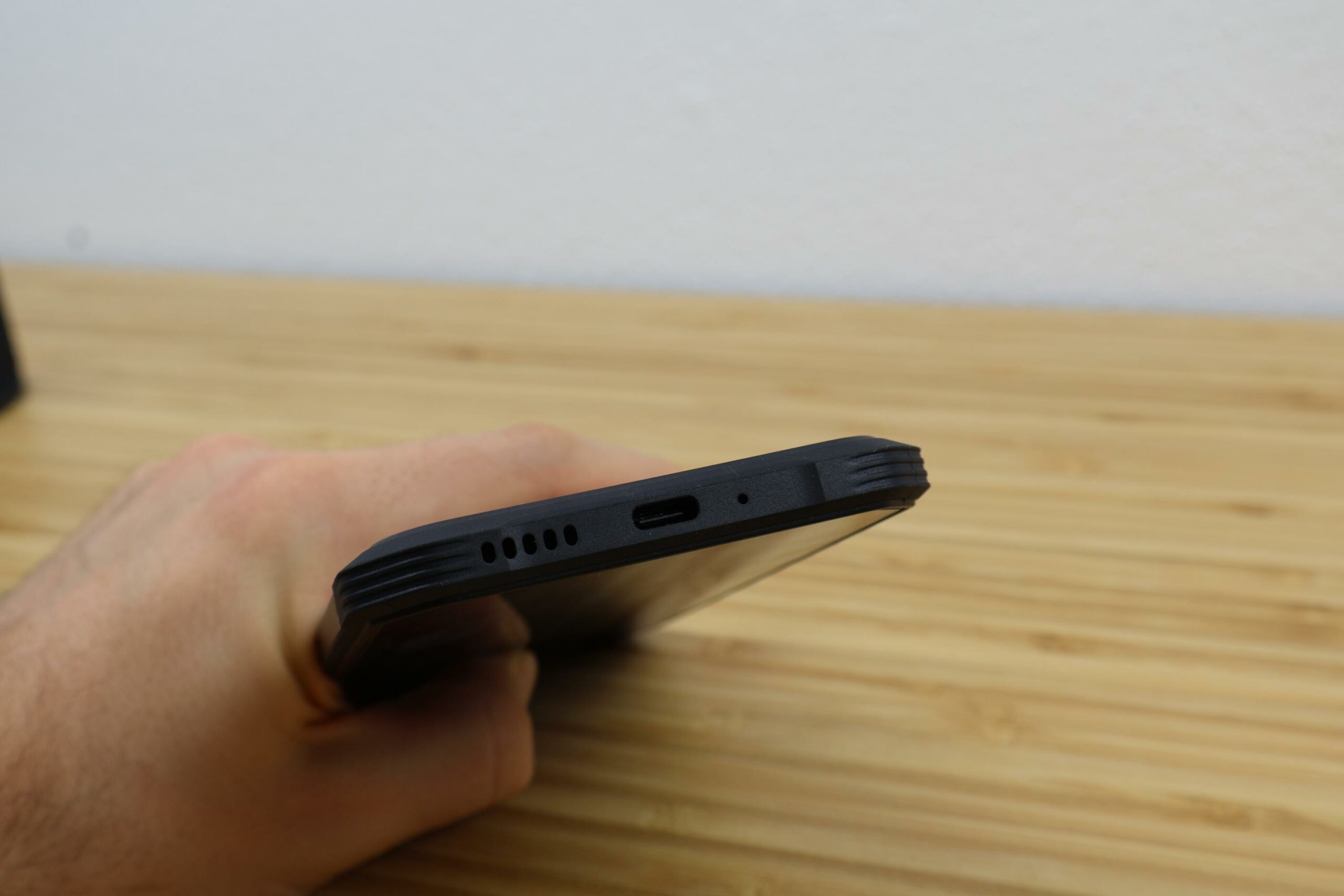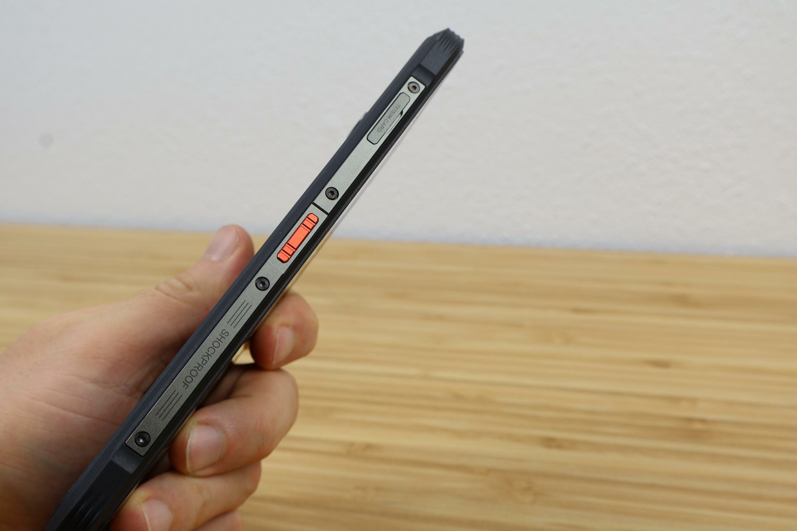Die Seitenleisten bestehen aus Metall. Auf der rechten Seite befinden sich die Lautstärkewippe und der Powerbutton mit integriertem Fingerabdrucksensor. Auf der linken Seite sitzen der SIM-Schacht und der Sonderbutton. Alle Tasten weisen einen präzisen Druckpunkt auf und sitzen fest im Gehäuse. An der Unterseite befindet sich der USB-C-Anschluss, der nicht durch eine Gummiabdeckung geschützt wird.