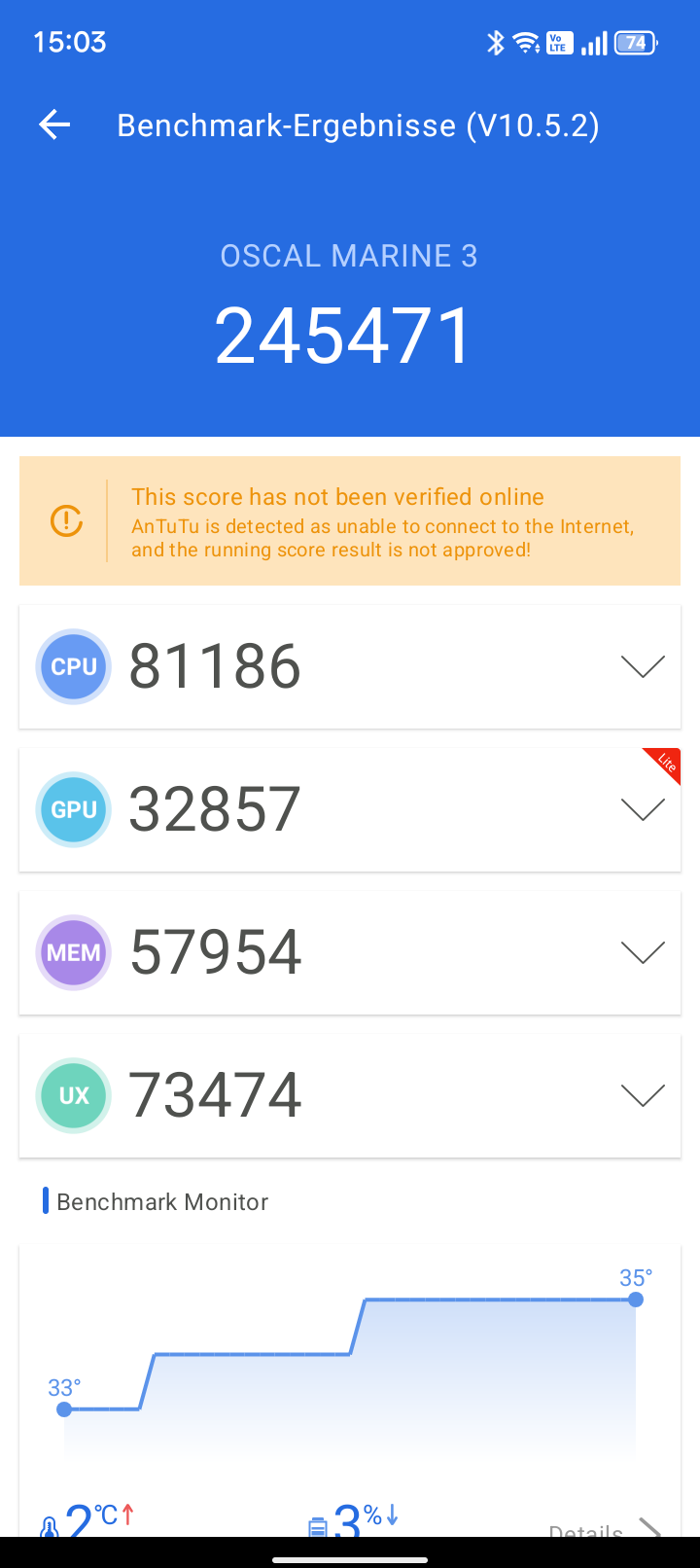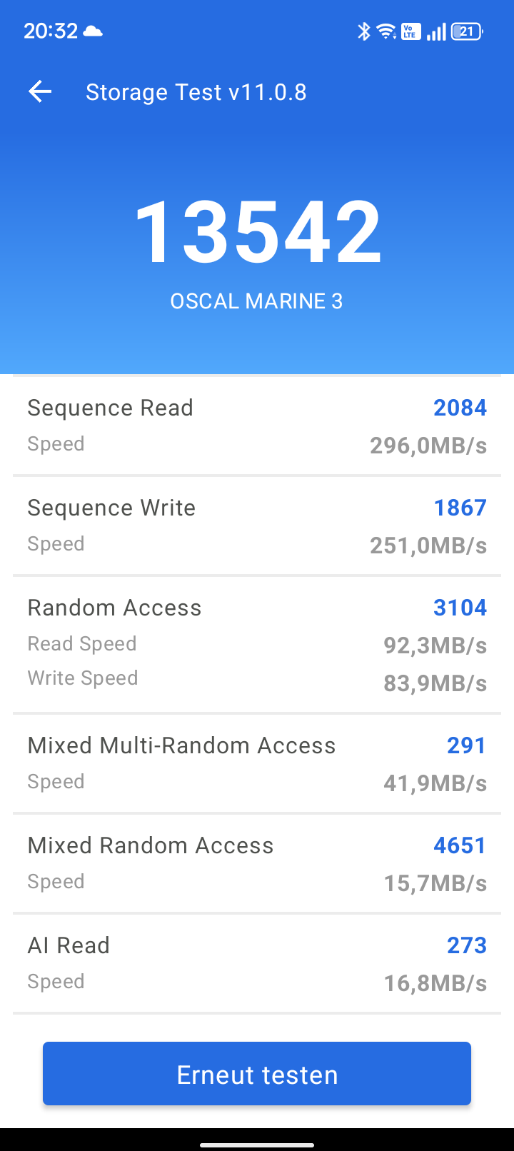 Das System läuft flüssig und stabil; im Testzeitraum traten keinerlei Probleme auf. Im Gegensatz zum TANK 1 verspricht Oscal beim Marine 3 keine System-Updates.