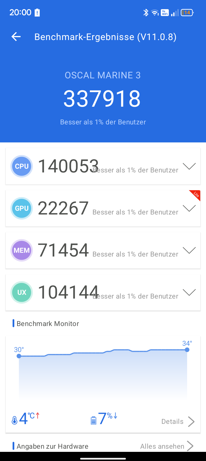 Das Oscal Marine 3 ist ein Budget-Outdoor-Smartphone, das ihr zum Testzeitpunkt für zirka 150€ erhaltet. Das Gerät kann die Erwartungen in diesem Preisbereich nicht erfüllen und bleibt deutlich hinter der Konkurrenz zurück. Die Kamera liefert schwache Ergebnisse, die allgemeine Leistung ist unterdurchschnittlich, das Panel zu dunkel und auch der Akku liegt nicht auf dem Niveau der Mitbewerber.