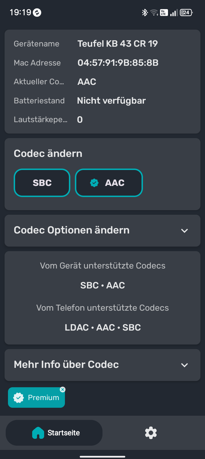 Für die Internetverbindung zu Hause unterstützt das Marine 3 Wifi 5. Der Empfang war im Test immer gut, allerdings sei erwähnt, dass das Gerät kein WPA3 unterstützt und ihr es nicht mit entsprechenden Netzwerken verbinden könnt. Zudem gibt es Bluetooth 5.0, das die Audio-Codecs SBC, AAC und LDAC unterstützt. Auch hier stellte der Empfang kein Problem dar. NFC ist ebenfalls an Bord.