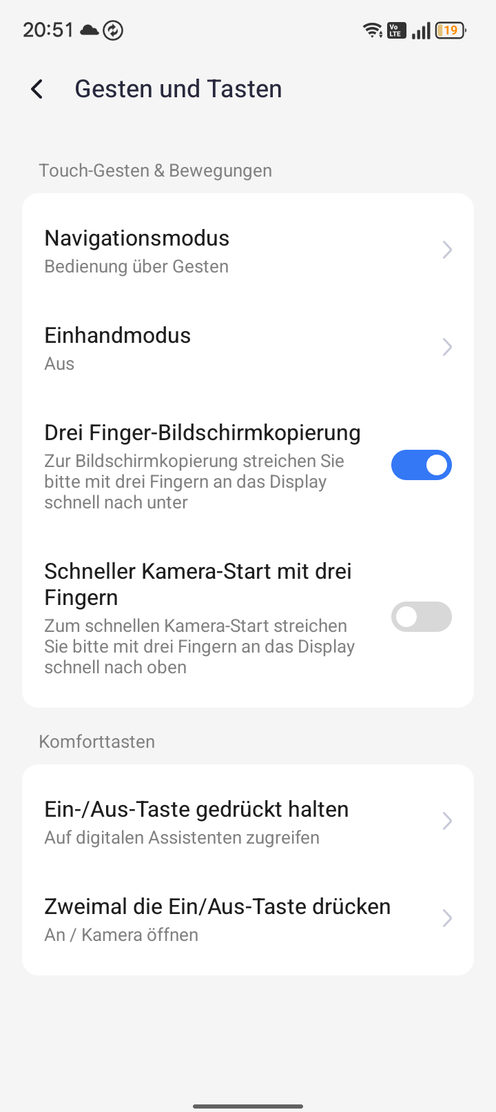 Bei der Integration von Shortcut-Gesten sind die gängigen Features wie „Double-Tap to Wake“, das Aktivieren durch Hochheben und der 3-Finger-Screenshot vorhanden. Der Sonderbutton lässt sich mit drei Funktionen belegen (einfaches Drücken, doppeltes Drücken, gedrückt halten).
