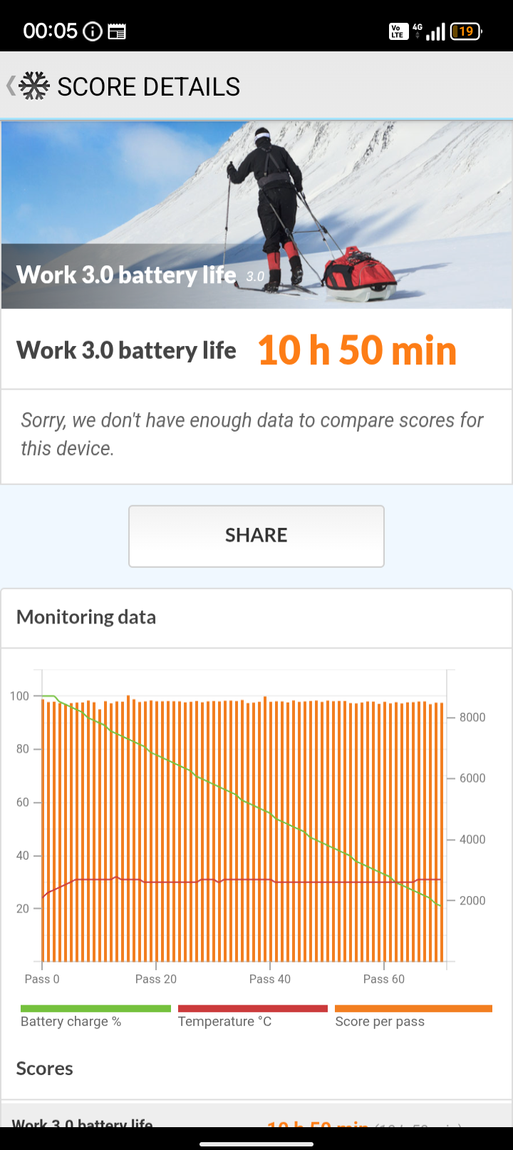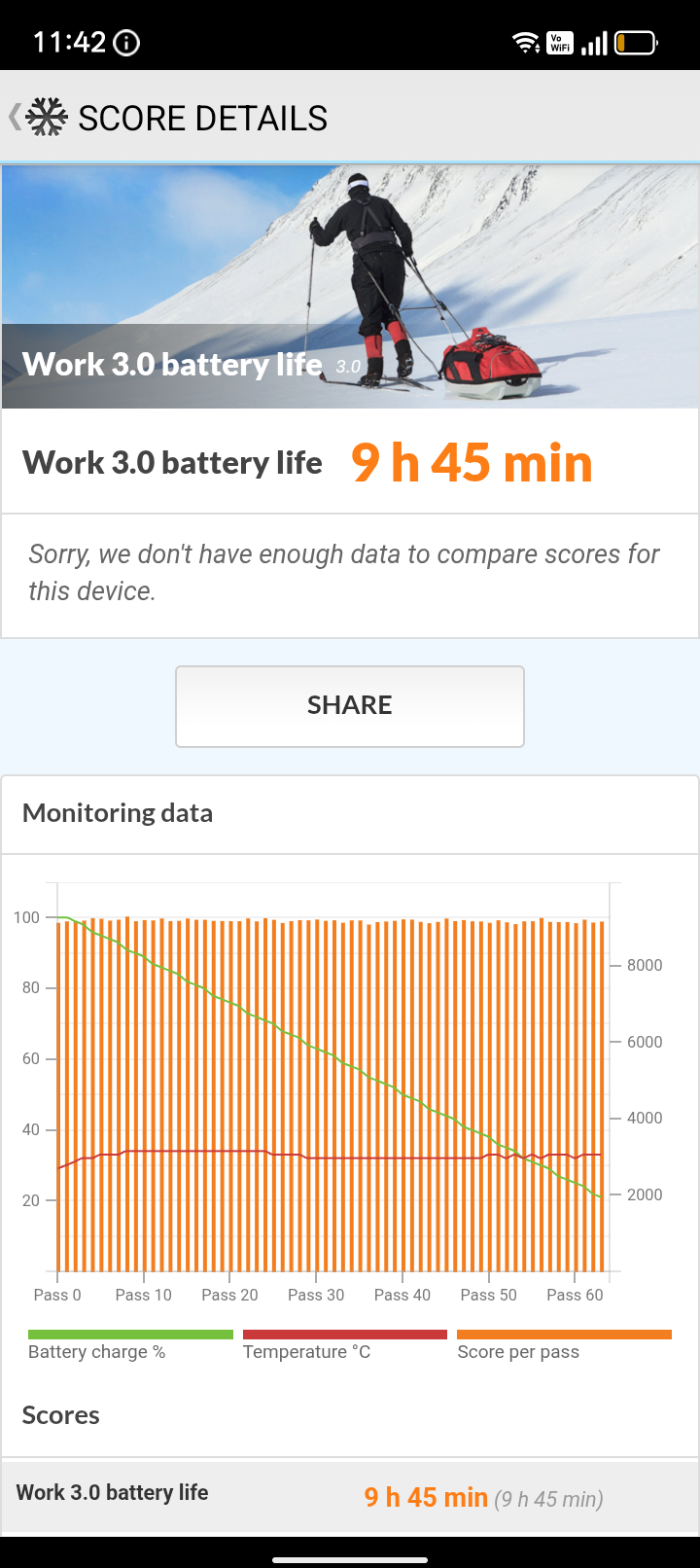 Im Marine 3 kommt ein 5000mAh-Akku zum Einsatz. Damit erreichen wir im Benchmark bei der 60Hz-Einstellung für das Display 10 Stunden und 50 Minuten. Mit 90Hz erreicht ihr noch 9 Stunden und 45 Minuten. Insgesamt reicht das aus, um den Tag mit einer Ladung problemlos zu überstehen, und auch der zweite Tag ist noch erreichbar, wenn ihr auf die Nutzung achtet.