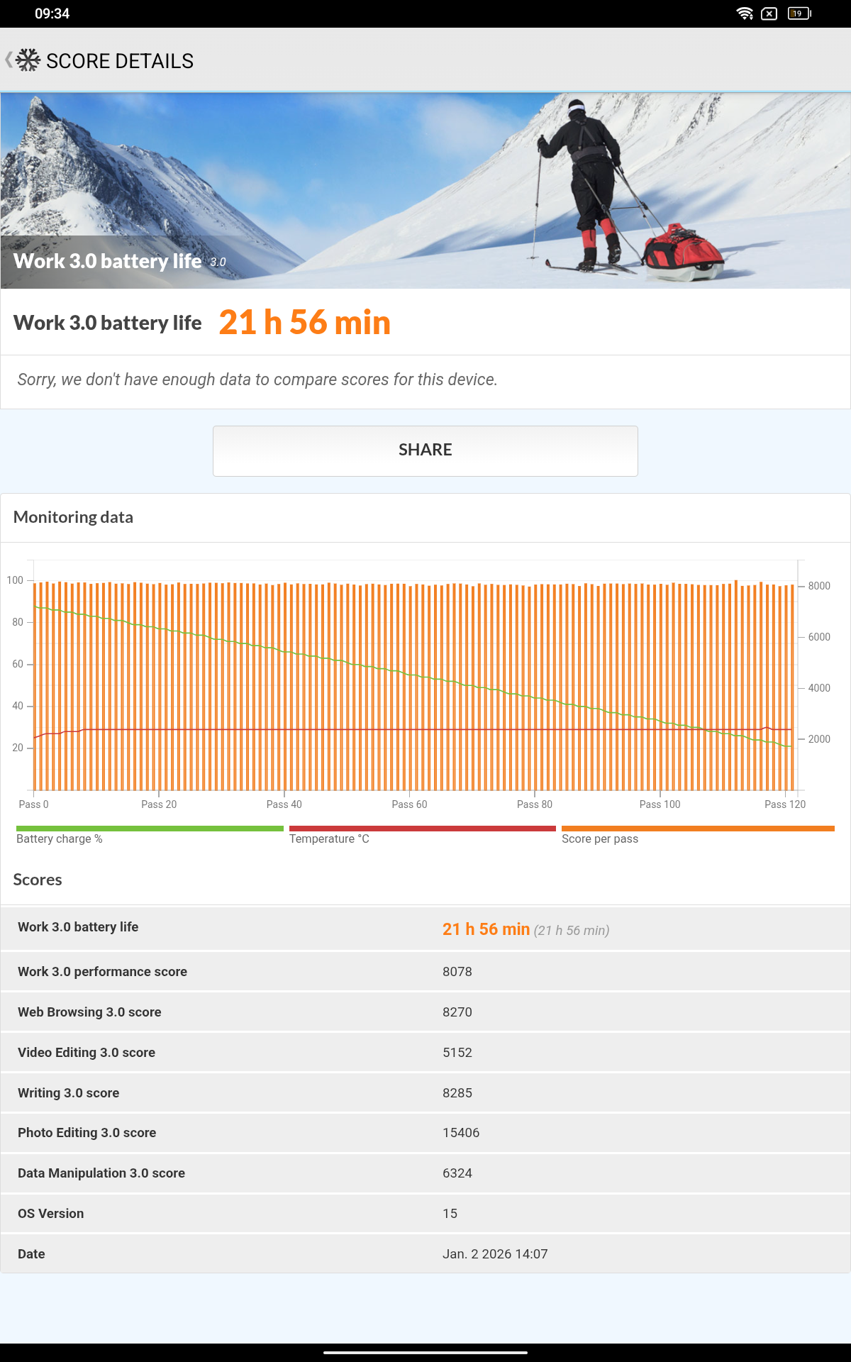 Verbaut sind 8GB LPDDR4x Arbeitsspeicher und langsamer eMMC 5.1 Systemspeicher. Zusätzlich gibt es einen Modus zur Leistungssteigerung. Im Akkutest konnten wir diesen Modus nicht aktivieren, um den energetischen Mehrverbrauch zu prüfen. Beim Öffnen von Apps, dem Wechsel im Hintergrund oder Durchwischen konnte ich im Alltag keinen merkbaren Unterschied ausmachen. Im Performancetest hat der Modus aber ein paar Punkte gut gemacht: