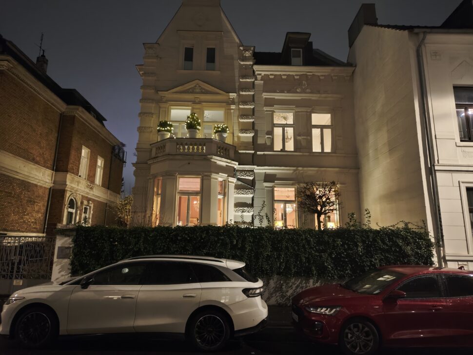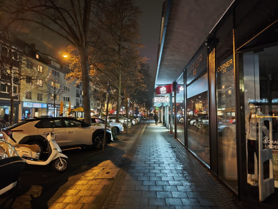 Sobald das Licht schwindet, zeigt sich ein gemischtes Bild. Positiv ist, dass die Aufnahmen scharf und sauber bleiben; Details gehen auch in den Ecken nicht verloren. Allerdings greift die Software beim Aufhellen der Schatten teilweise zu aggressiv ein, wodurch die Bilder etwas überbearbeitet wirken. Zudem haben wir einen deutlichen Gelbstich in vielen Nachtaufnahmen festgestellt, der die Atmosphäre etwas verfälscht.