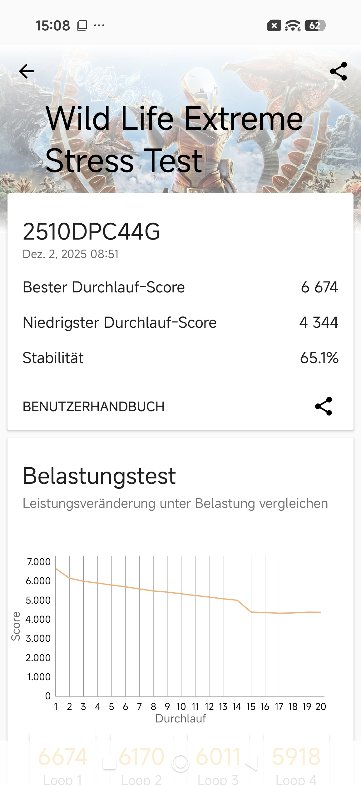Beim Thema Kühlung wirbt Poco mit „LiquidCool 3.0“ und einem „IceLoop“-System. Im Alltag funktioniert die Kühlung solide. Unter dauerhafter Volllast drosselt die GPU um etwa 35% und die CPU um 40%, wobei es sich bei letzterer nur um kurzzeitige Einbrüche handelt. Das klingt viel, ist in der Praxis aber kaum relevant. Der Chip hat so viele Reserven, dass ihr selbst im gedrosselten Zustand noch mehr Leistung habt, als die meisten Konkurrenten in der Spitze erreichen.