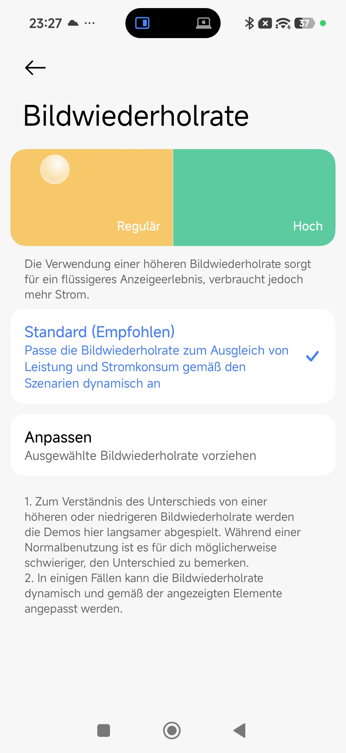 Bei der Bildwiederholrate verzichtet Poco weiterhin auf die teure LTPO-Technik. Das Panel schaltet also lediglich zwischen 60Hz und 120Hz um. In der Praxis funktioniert das absolut zuverlässig und sorgt für ein flüssiges Erlebnis. Gamer freuen sich zudem über eine Touch-Abtastrate von 480Hz, die in Spielen auf bis zu 2560Hz hochschnellt.