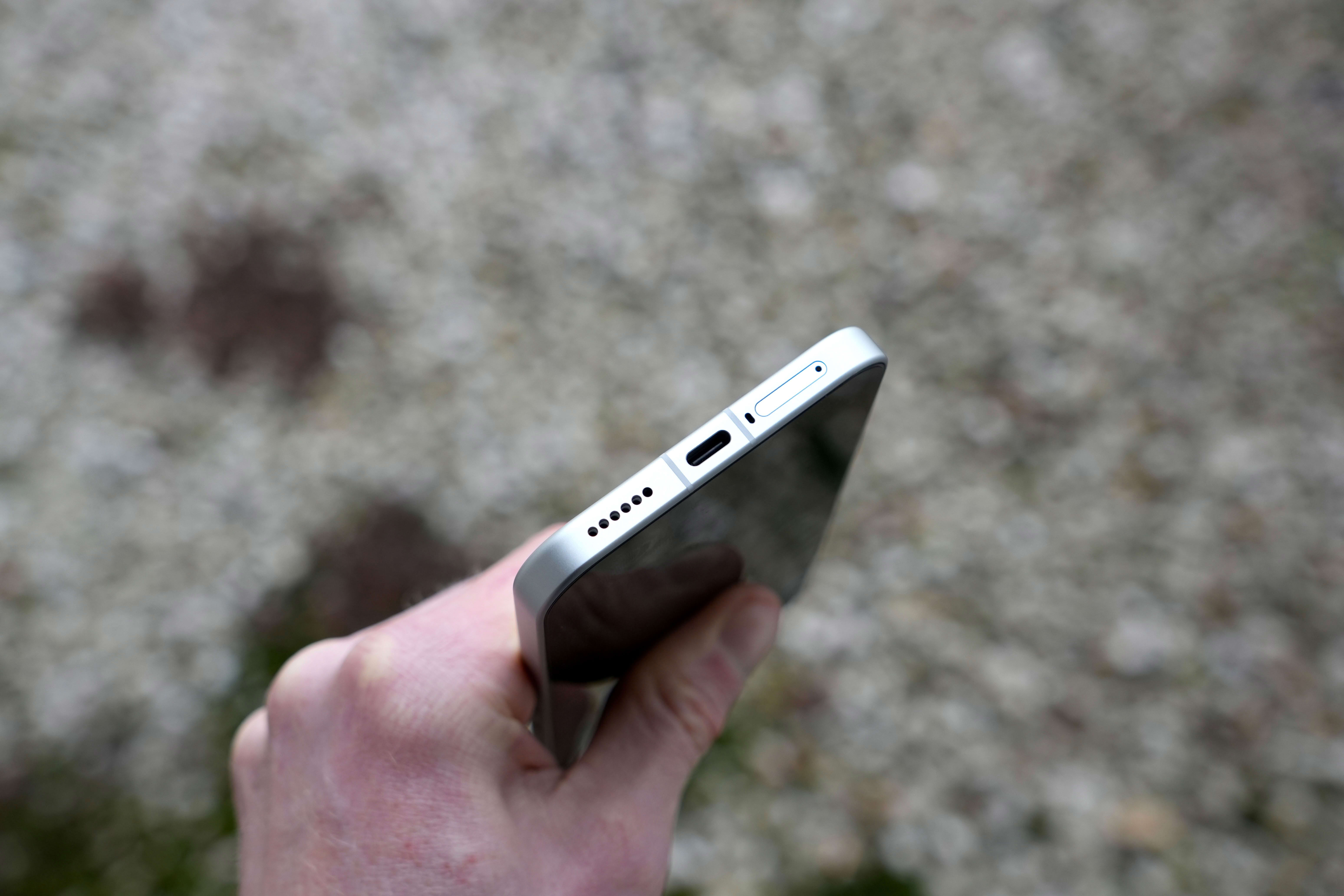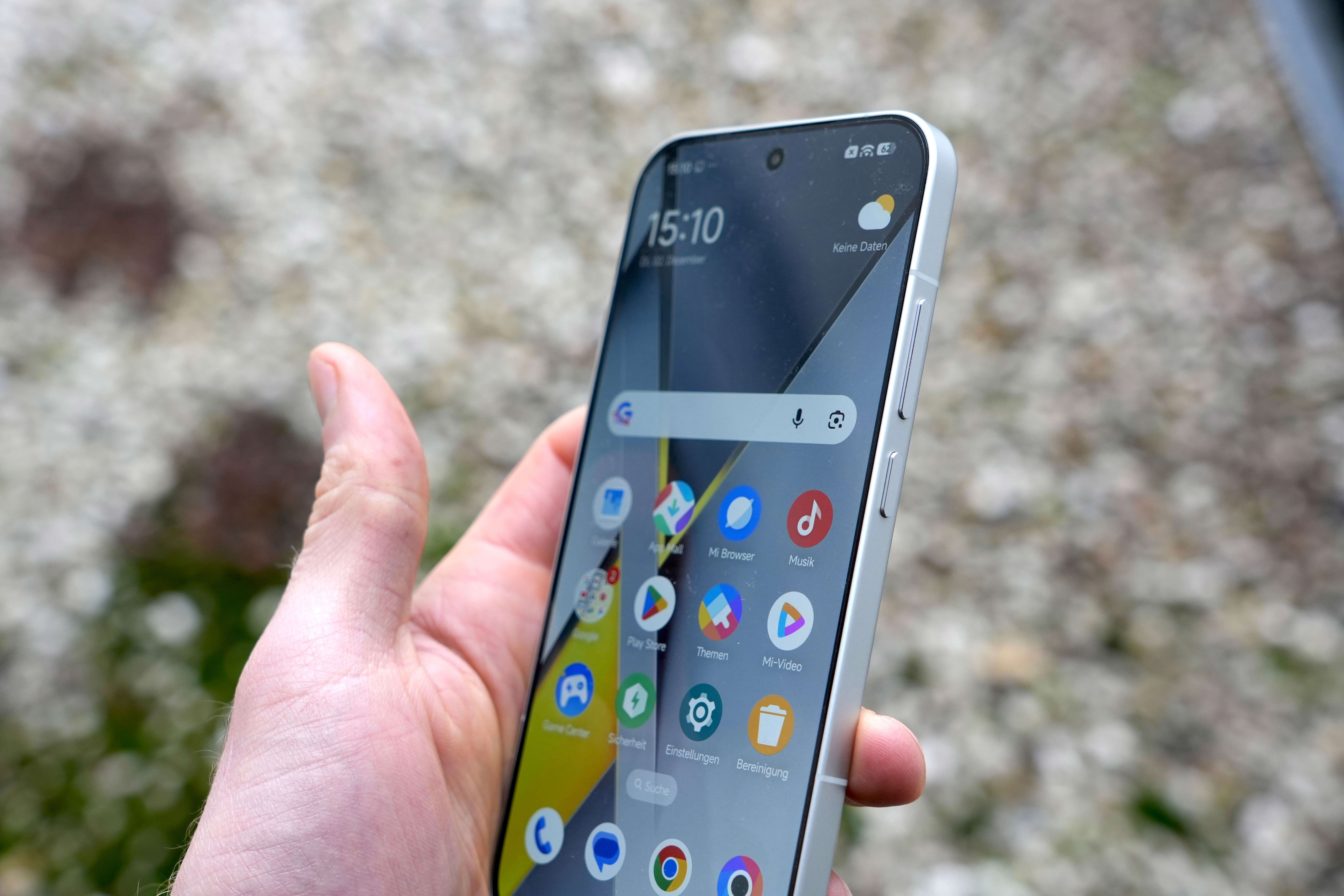 Bei der Materialwahl lässt sich Xiaomi nicht lumpen: Ein flacher Aluminiumrahmen trifft auf eine matte Glasrückseite. Unser Testgerät in der Farbe „Titanium Silver“ sieht dabei nicht nur schick aus, sondern erweist sich im Alltag als resistent gegen Fingerabdrücke. Die Haptik ist exzellent. Die Kanten sind zwar flach, aber minimal abgerundet, sodass das Gerät nicht scharf in die Handfläche schneidet. Hier ist Xiaomi ein guter Kompromiss aus kantig und abgerundet gelungen. Ihr bekommt echtes Premium-Feeling, das sich vor 1.000€-Flaggschiffen nicht verstecken muss.