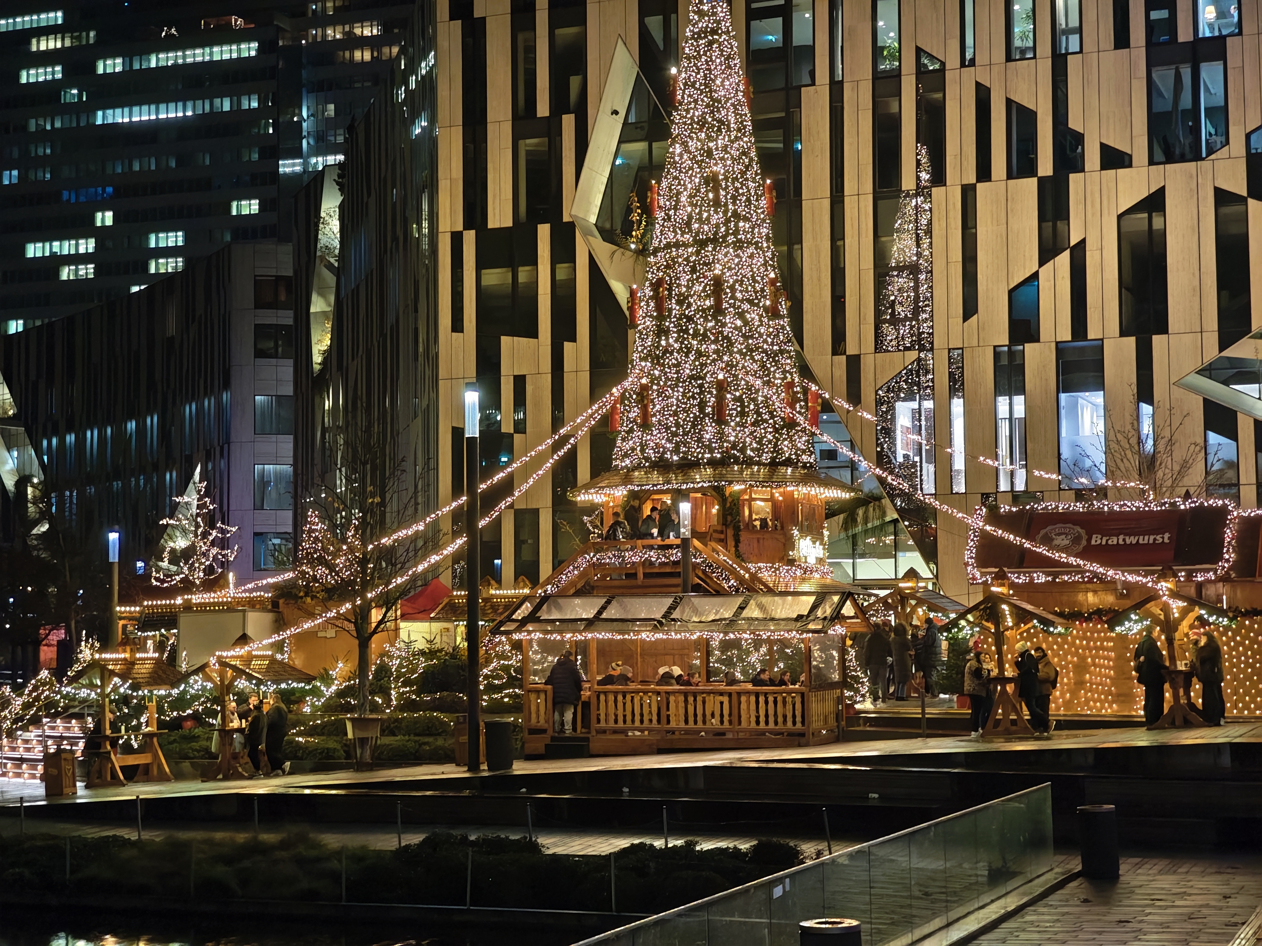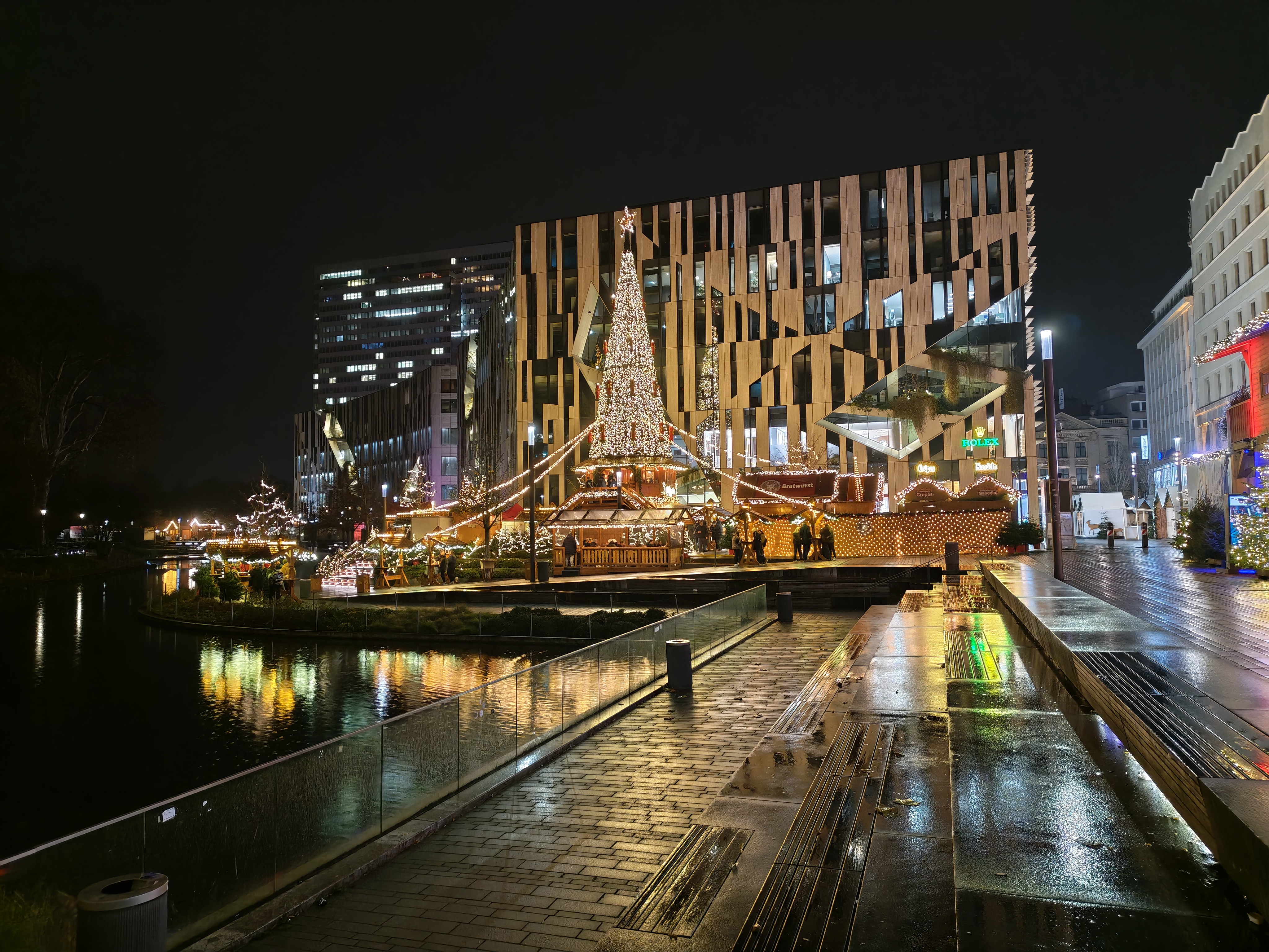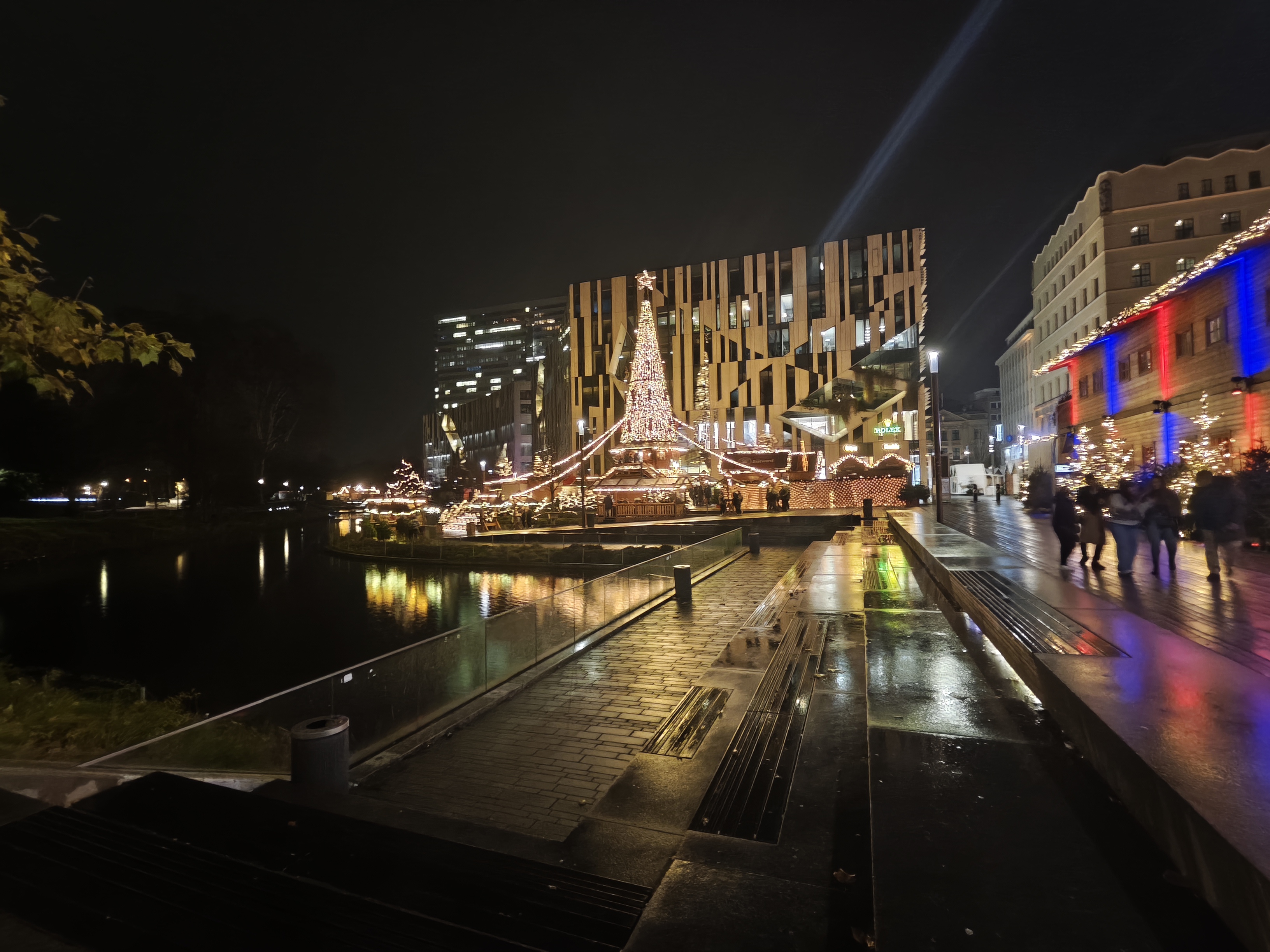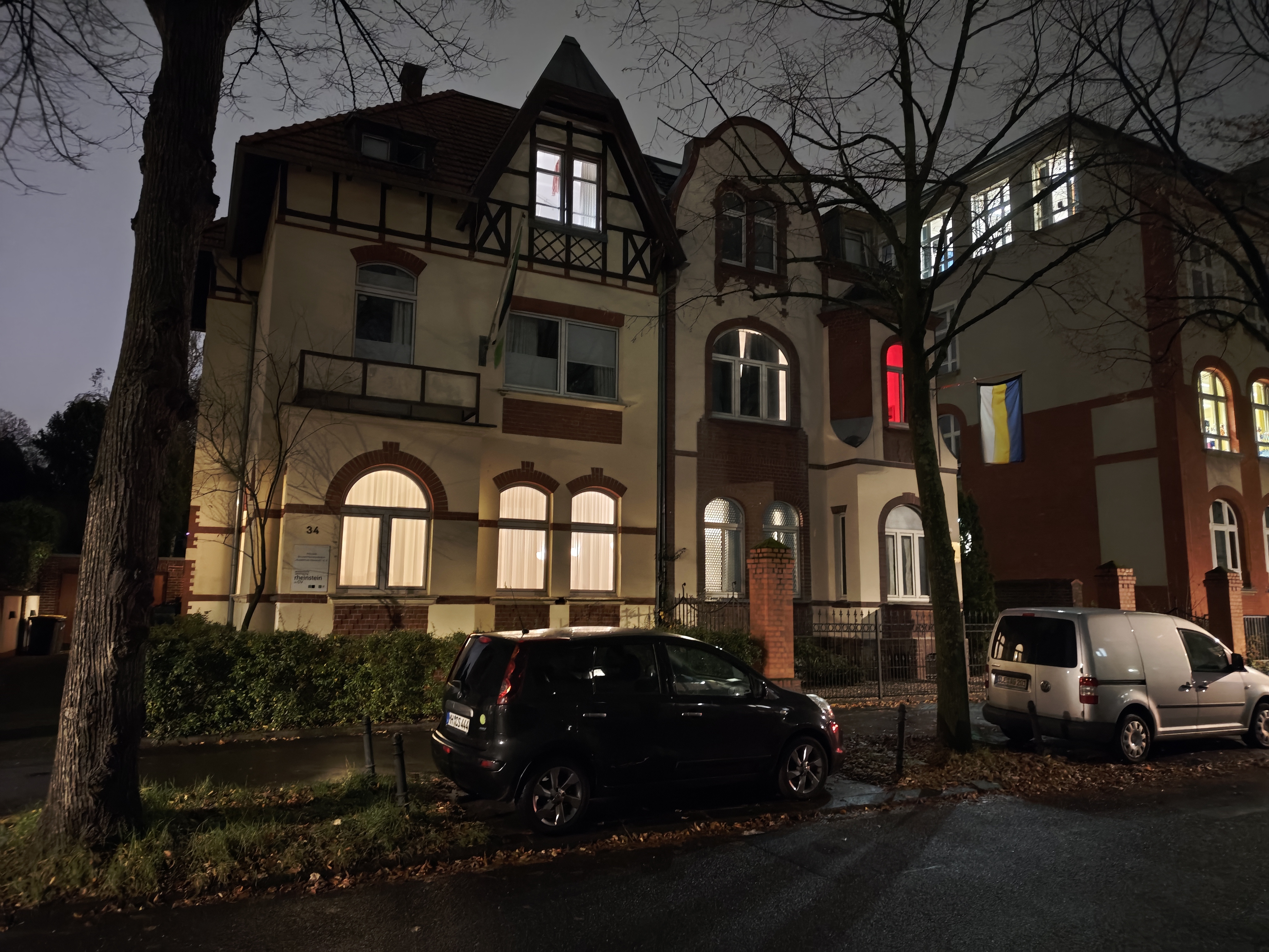 Sobald das Licht schwindet, zeigt sich ein gemischtes Bild. Positiv ist, dass die Aufnahmen scharf und sauber bleiben; Details gehen auch in den Ecken nicht verloren. Allerdings greift die Software beim Aufhellen der Schatten teilweise zu aggressiv ein, wodurch die Bilder etwas überbearbeitet wirken. Zudem haben wir einen deutlichen Gelbstich in vielen Nachtaufnahmen festgestellt, der die Atmosphäre etwas verfälscht.