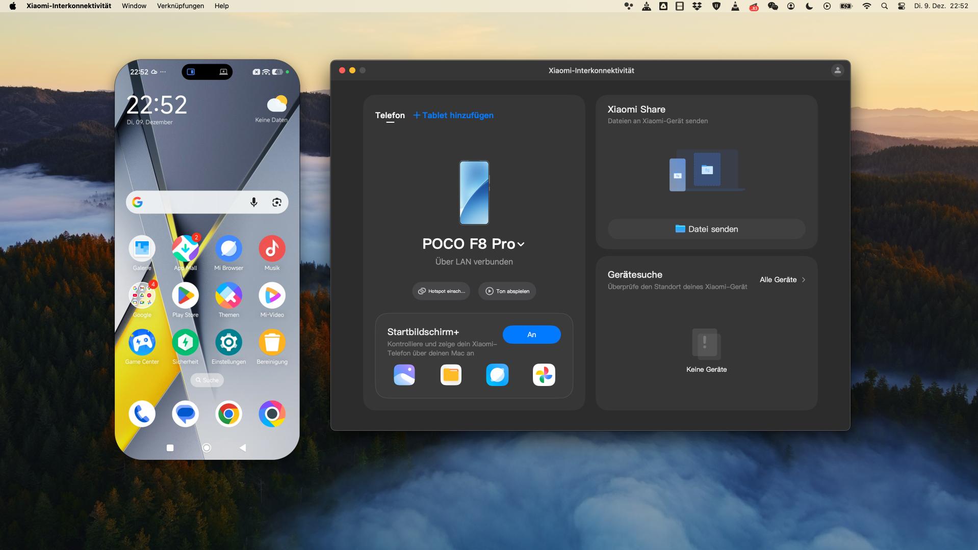 Eine echte Überraschung im Test ist Hyper Connect. Diese Software verbindet das Smartphone nahtlos mit Windows und jetzt auch mit iOS und MacOS. Bei unserem Test mit dem Mac waren wir fast schon schockiert, wie gut das funktioniert. Ihr könnt euren Smartphone-Bildschirm drahtlos auf den Mac übertragen und das Handy über den PC bedienen – und zwar in voller Auflösung und mit flüssigen 120Hz. Auch die drahtlose Dateiübertragung klappt reibungslos. Wer viel im Wechsel mit Handy und PC oder Mac arbeitet, für den ist diese nahtlose Anbindung ein echter Kaufgrund, den man sonst in dieser Qualität kaum findet.