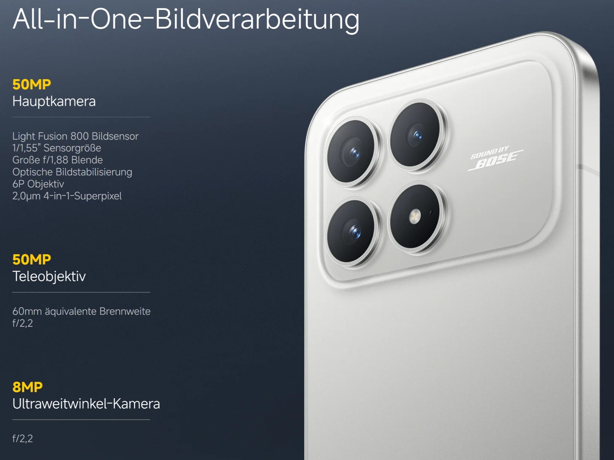 - Ultraweitwinkel: 50MP, f/2.4