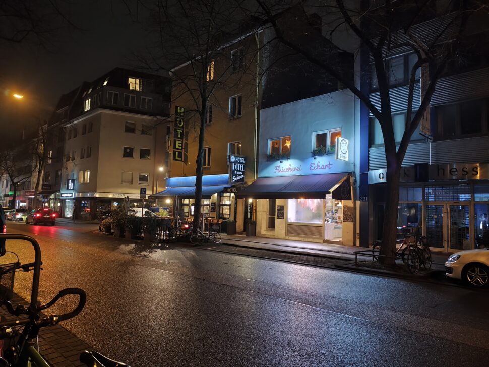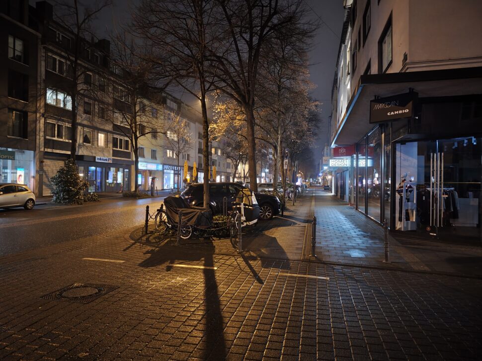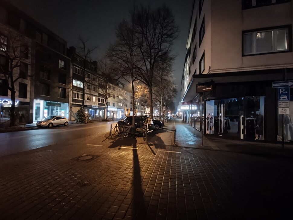 Auch nachts zeigt die Hauptkamera des Poco M8 Pro viele Stärken: sehr gute Dynamik, eine gute Integration von Lichtern und eine eher natürliche, zurückhaltende Farbdarstellung. Die Schärfe ist solide, aber etwas schwächer als beim Redmi. Insgesamt sind die Ergebnisse des Poco M8 Pro vergleichbar mit dem Redmi Note 15 Pro+ und der Unterschied geringer als die Megapixel-Zahl vermuten lässt.