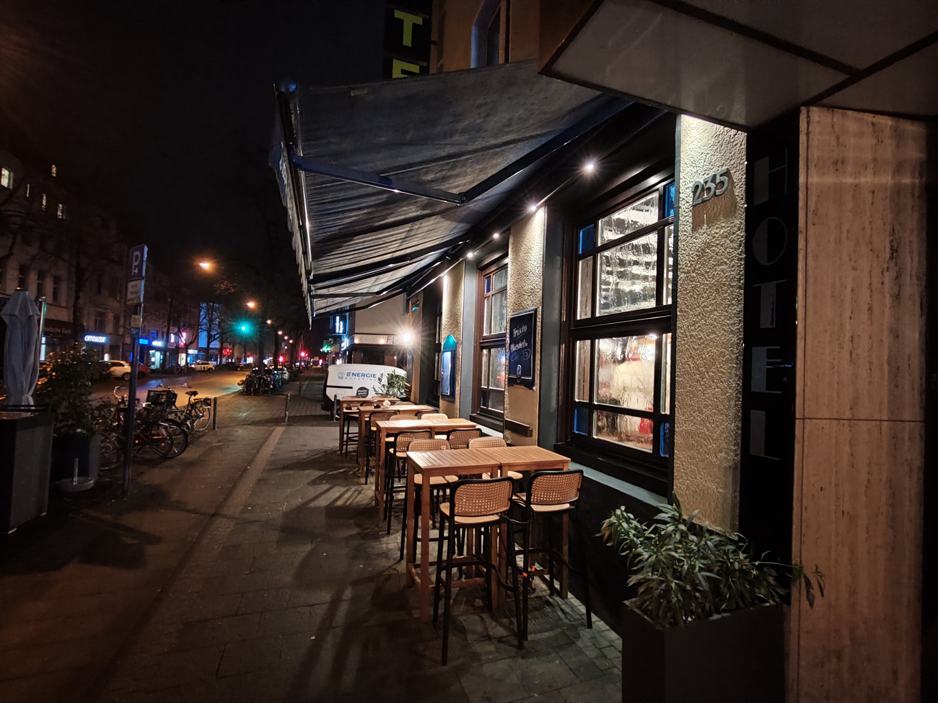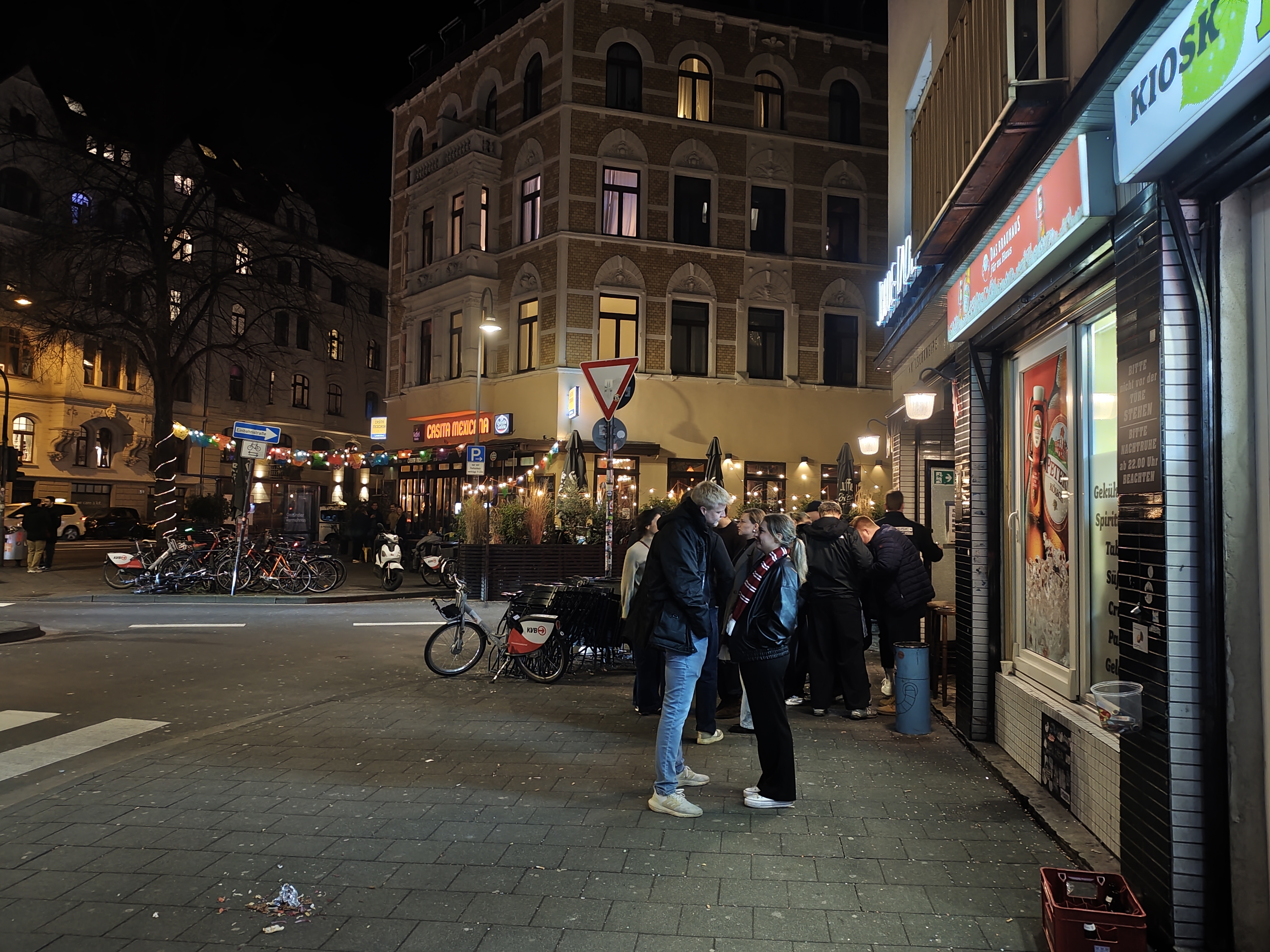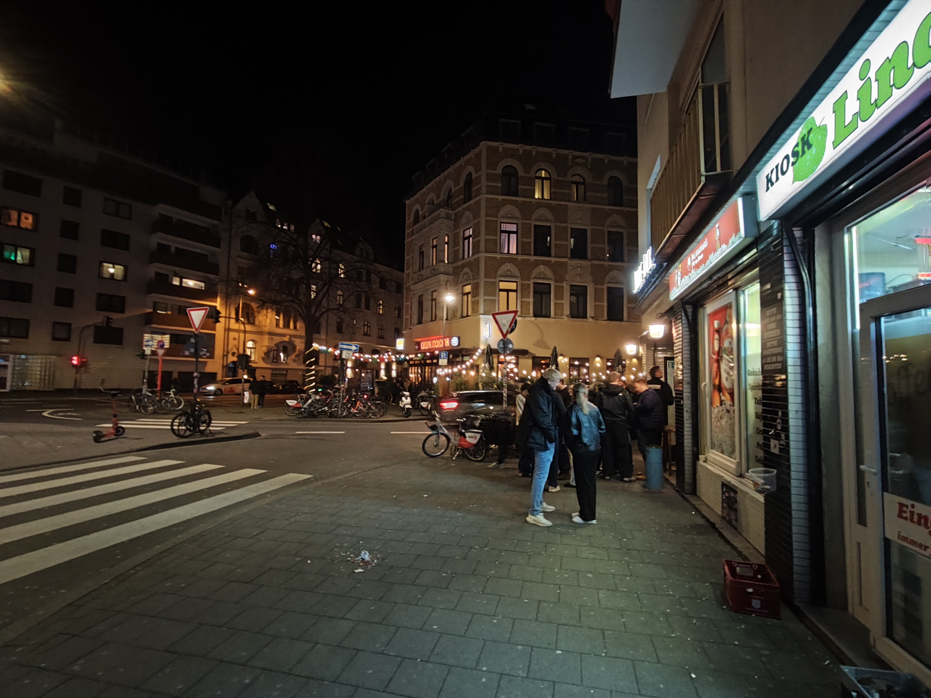 Auch nachts zeigt die Hauptkamera des Poco M8 Pro viele Stärken: sehr gute Dynamik, eine gute Integration von Lichtern und eine eher natürliche, zurückhaltende Farbdarstellung. Die Schärfe ist solide, aber etwas schwächer als beim Redmi. Insgesamt sind die Ergebnisse des Poco M8 Pro vergleichbar mit dem Redmi Note 15 Pro+ und der Unterschied geringer als die Megapixel-Zahl vermuten lässt.