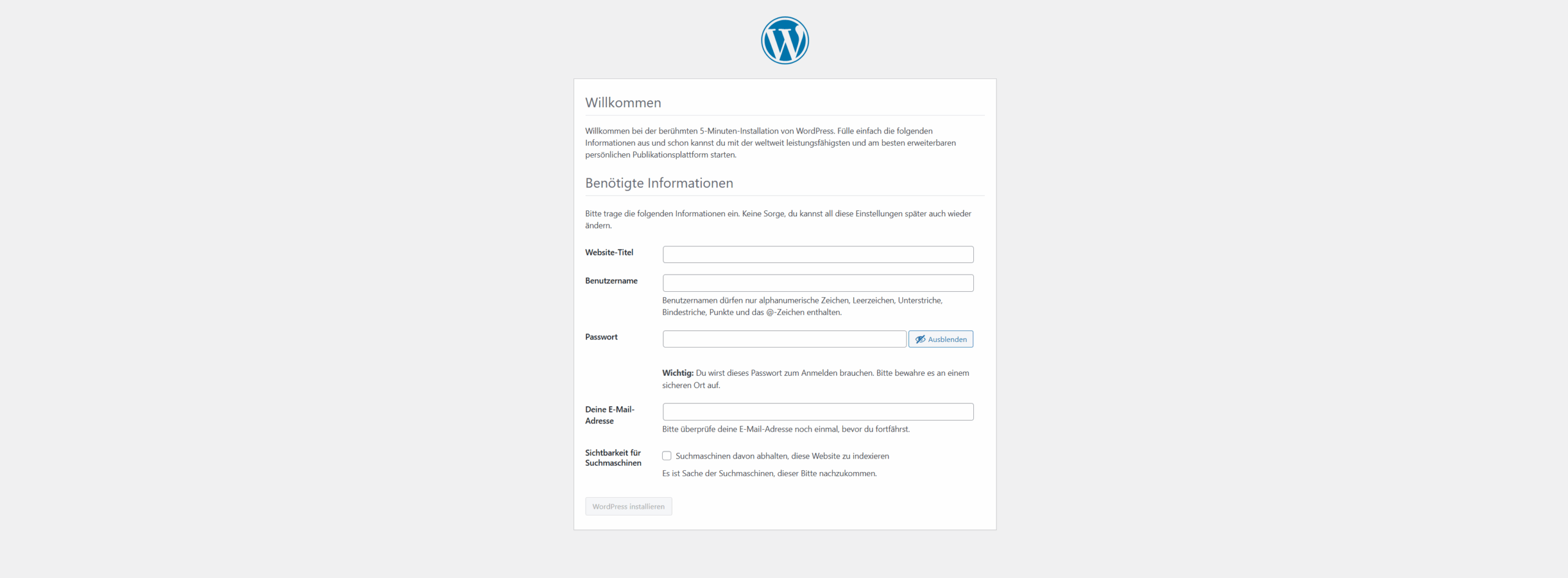 Und das war es auch schon. Nun könnt ihr die Domain aufrufen und WordPress einrichten.