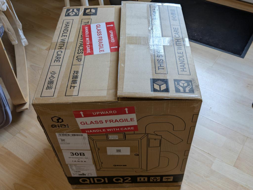 Beim Auspacken hinterlässt der QIDI Q2 einen sehr soliden Eindruck. Das Gehäuse wirkt stabil und verwindungssteif, Türen schließen sauber, Spaltmaße sind gleichmäßig. Der vollständig geschlossene Bauraum reduziert Geräusche, schützt vor Zugluft und sorgt für eine stabile Temperatur. Gerade bei ABS und ASA ist das entscheidend.