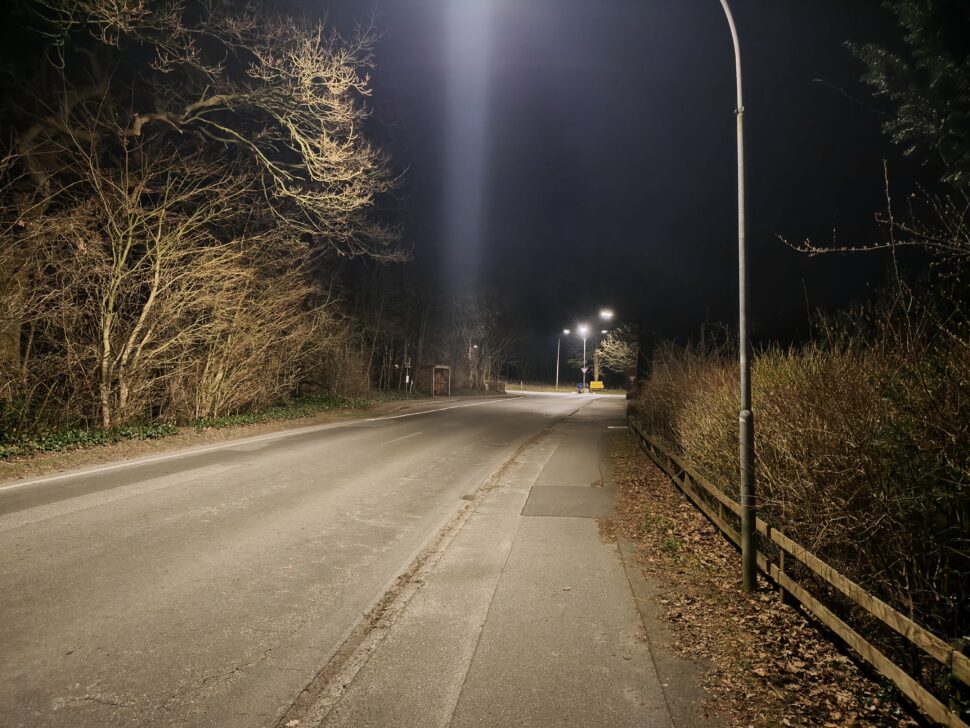 Nachdem das Realme 16 Pro schon am Tag gute Ergebnisse geliefert hat, setzt sich das hervorragende Ergebnis in der Nacht fort. Es wird automatisch ein Nachtmodus aktiviert. Mit einer längeren Belichtungszeit und dank optischer Stabilisierung gelingen Aufnahmen mit einer guten Schärfe und vielen Details. Der Kontrast ist wunderbar und das Realme 16 Pro liefert überzeugende Nachtaufnahmen. Die Farben sind warm, passen aber in die Gesamtkomposition. Und der Software muss wirklich ein Lob ausgesprochen werden. Das Holzschild zum Bürgerpark in dieser Qualität aufzunehmen, schaffen sonst nur Oberklasse-Geräte. Auch mein Samsung S25 Edge scheitert an dieser Aufgabe, obwohl der gleiche Sensor verbaut ist. Insofern insgesamt eine bärenstarke Leistung der Hauptkamera.