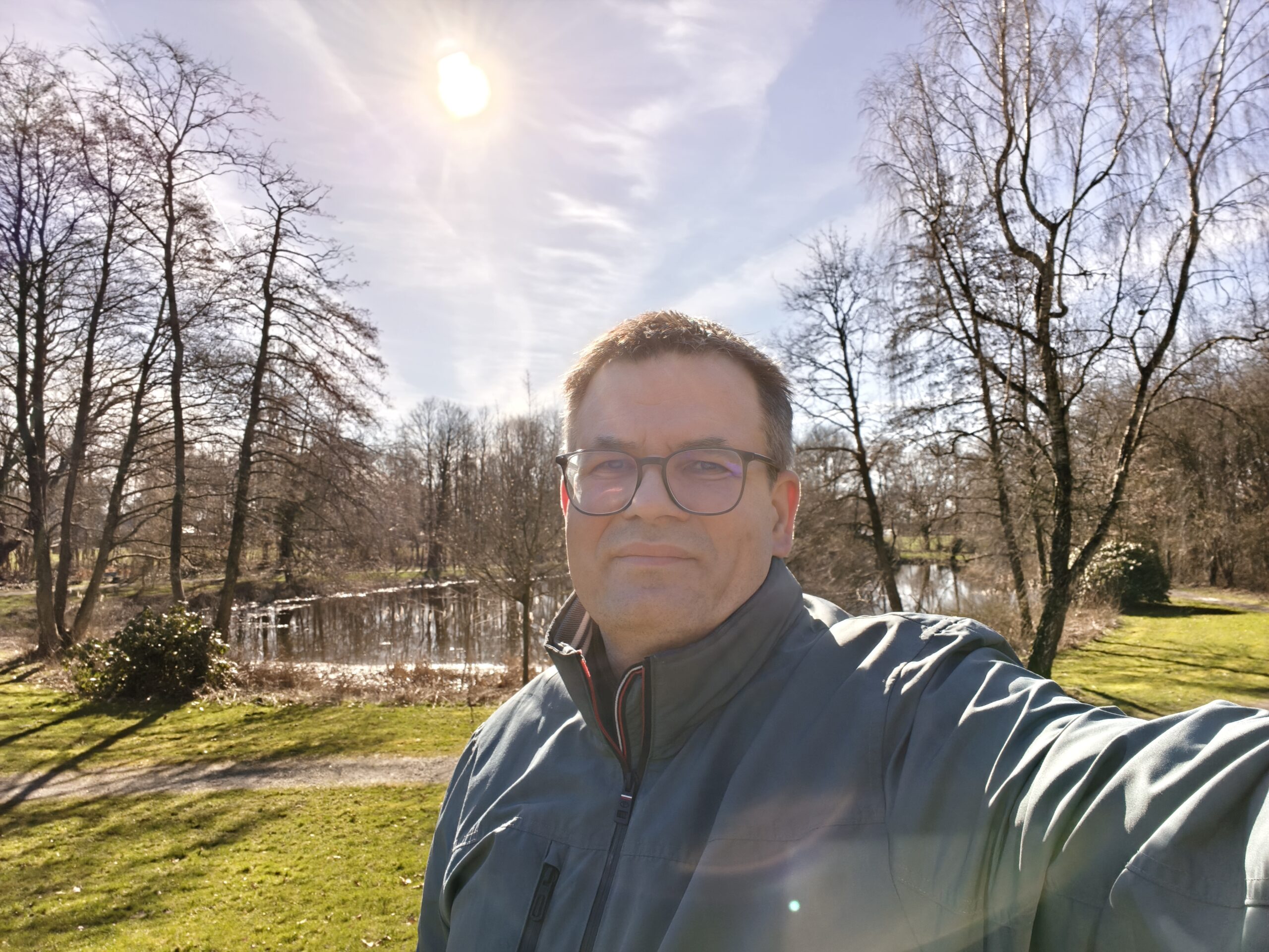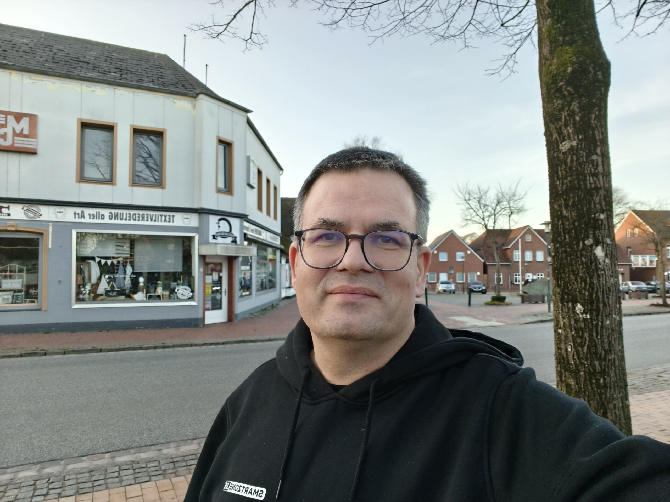 Auch wenn 50MP als Frontkamera verbaut sind, ist diese ein wenig schwächer als die beiden anderen Kameras. Hier muss das Licht passen, damit das Gesicht richtig ausgeleuchtet wird. Seitliches Sonnenlicht bereitet dem Sensor sichtbar Probleme. Die Hautfarbe ist recht natürlich und auch die Trennung zum Hintergrund ist gut. Fokusprobleme gibt es auch bei dieser Kamera nicht. Trotzdem ist die Frontkamera für ein Mittelklassegerät astrein, man ist nur durch die starke Hauptkamera ein wenig verwöhnt.