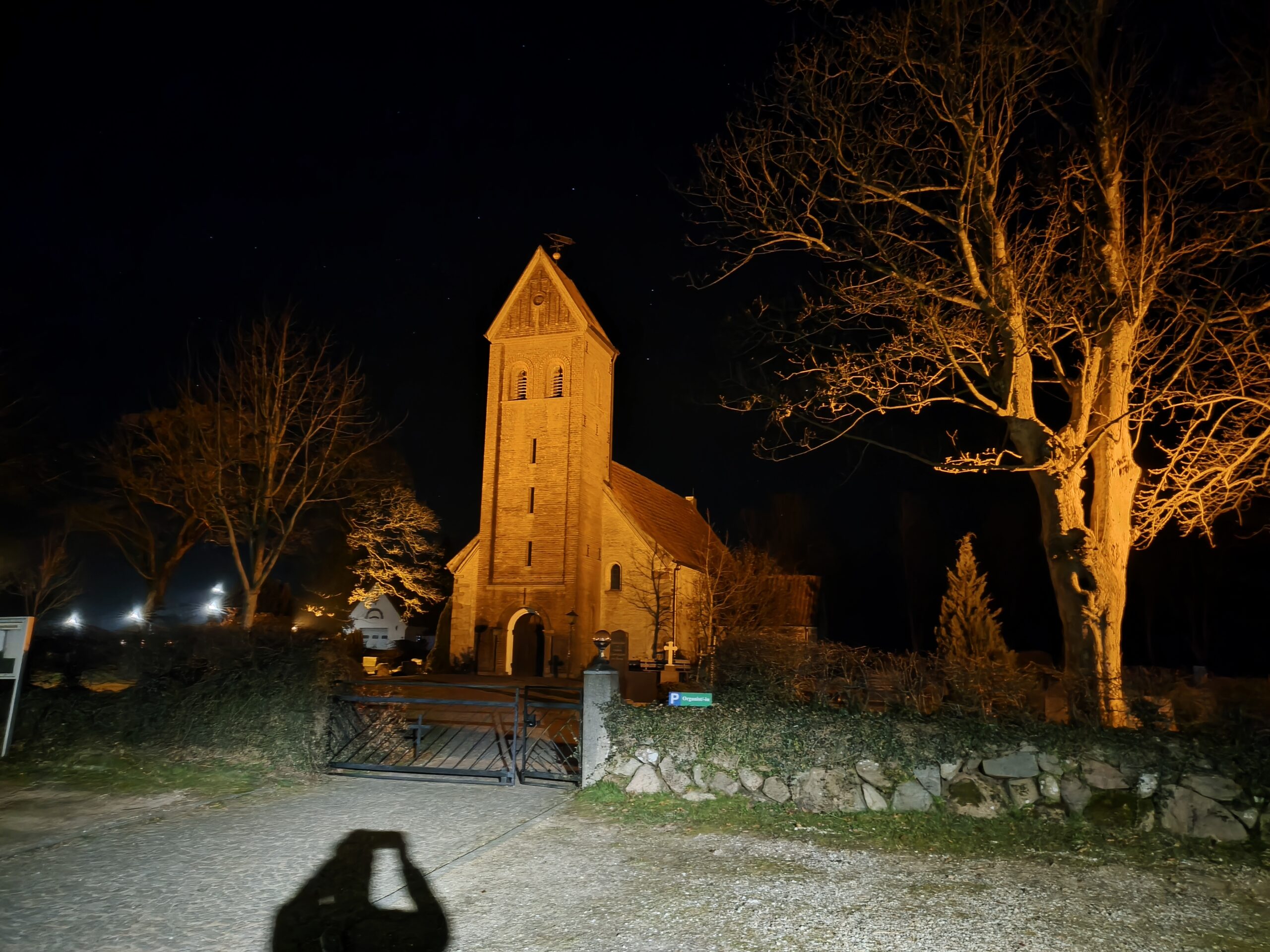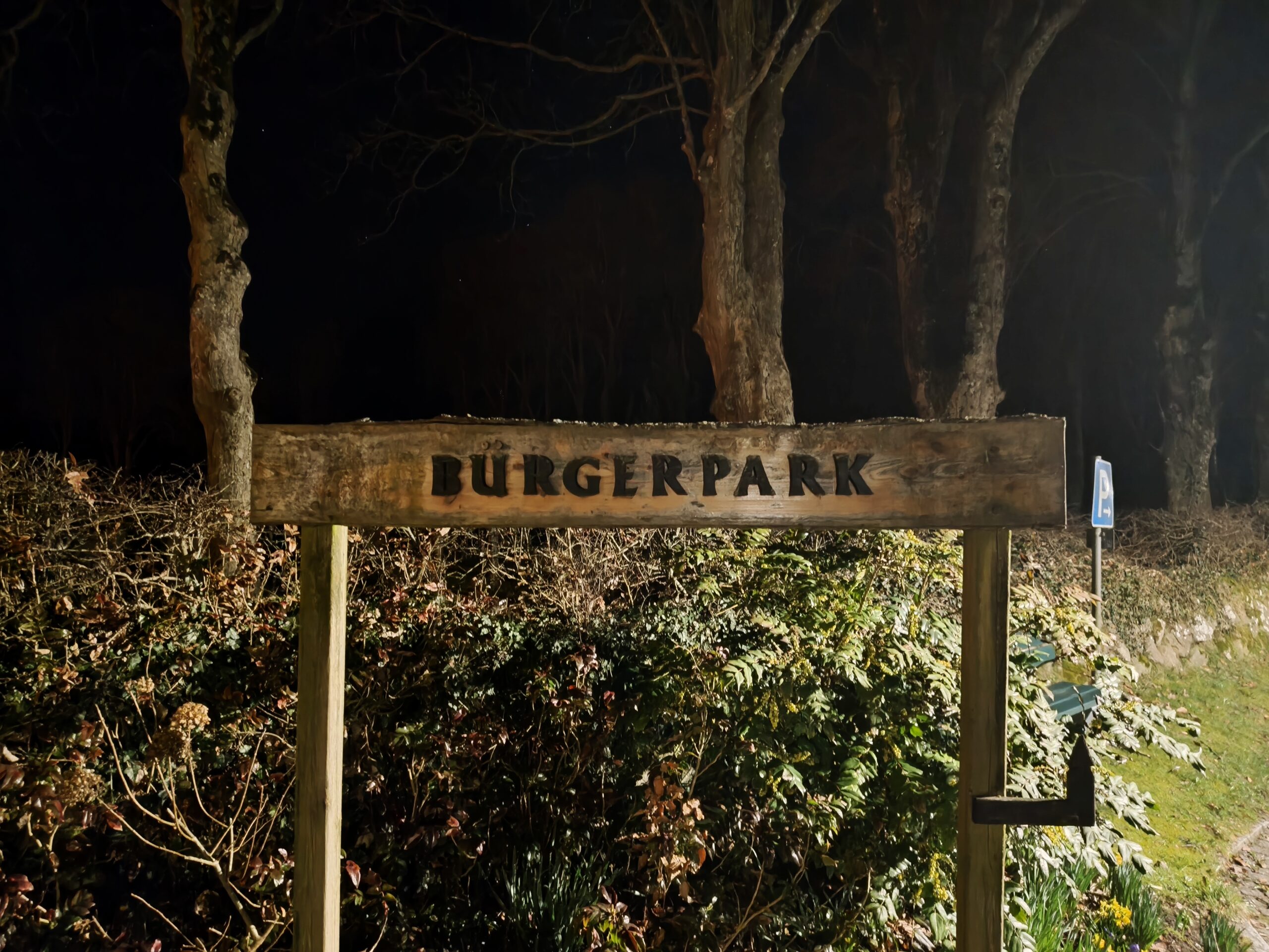 Nachdem das Realme 16 Pro schon am Tag gute Ergebnisse geliefert hat, setzt sich das hervorragende Ergebnis in der Nacht fort. Es wird automatisch ein Nachtmodus aktiviert. Mit einer längeren Belichtungszeit und dank optischer Stabilisierung gelingen Aufnahmen mit einer guten Schärfe und vielen Details. Der Kontrast ist wunderbar und das Realme 16 Pro liefert überzeugende Nachtaufnahmen. Die Farben sind warm, passen aber in die Gesamtkomposition. Und der Software muss wirklich ein Lob ausgesprochen werden. Das Holzschild zum Bürgerpark in dieser Qualität aufzunehmen, schaffen sonst nur Oberklasse-Geräte. Auch mein Samsung S25 Edge scheitert an dieser Aufgabe, obwohl der gleiche Sensor verbaut ist. Insofern insgesamt eine bärenstarke Leistung der Hauptkamera.