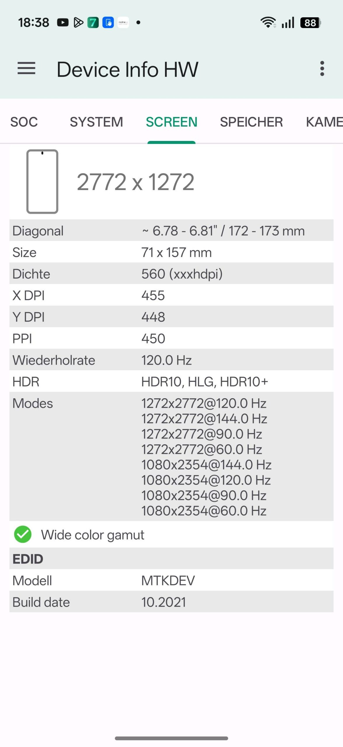 Bauartbedingt ist der Kontrast top und auch die seitliche Ablesbarkeit hervorragend. Die Farben sind ab Werk satt, können allerdings im System angepasst werden. Genauso wie der Hell/Dunkel-Wechsel oder die Reduzierung des Blaulichtanteils in der Nacht. Immerhin 100% des DCI-P3-Farbraums werden von der 10-Bit-Anzeige abgedeckt und mit der Unterstützung von HDR 10+ und HDR HLG sammelt das Smartphone weitere Punkte.