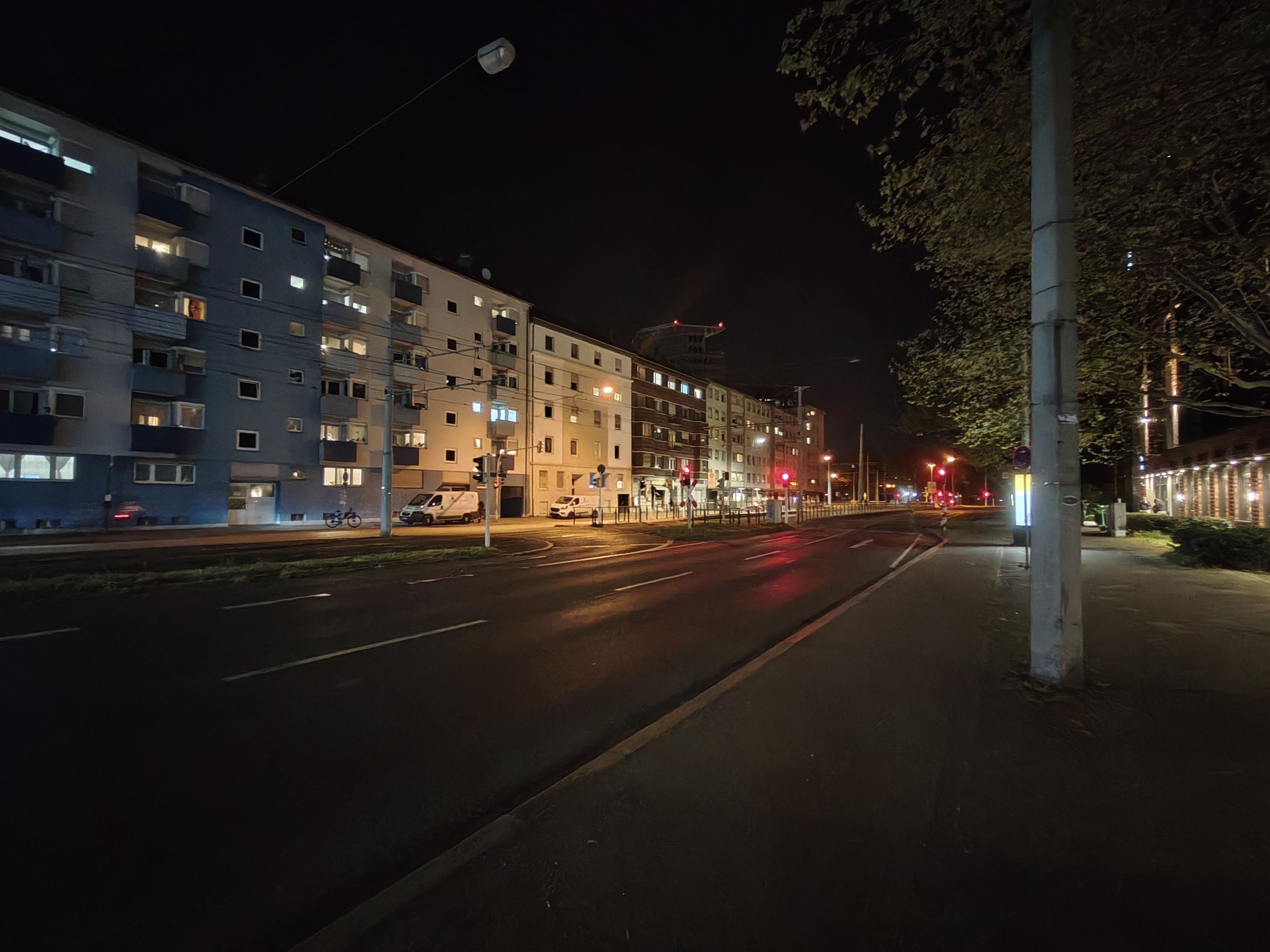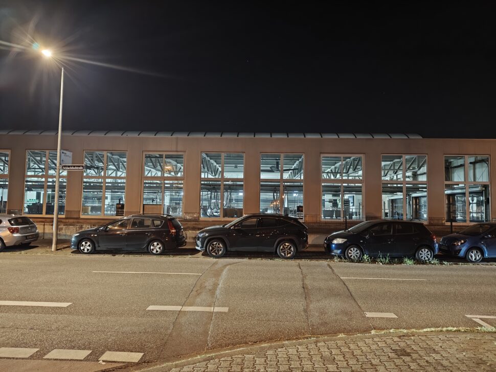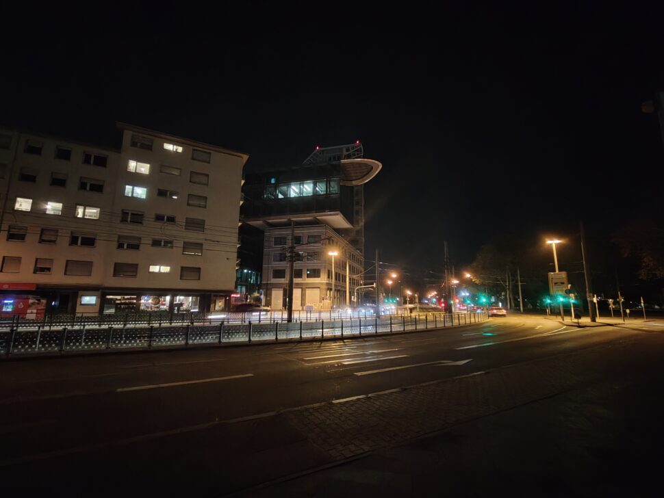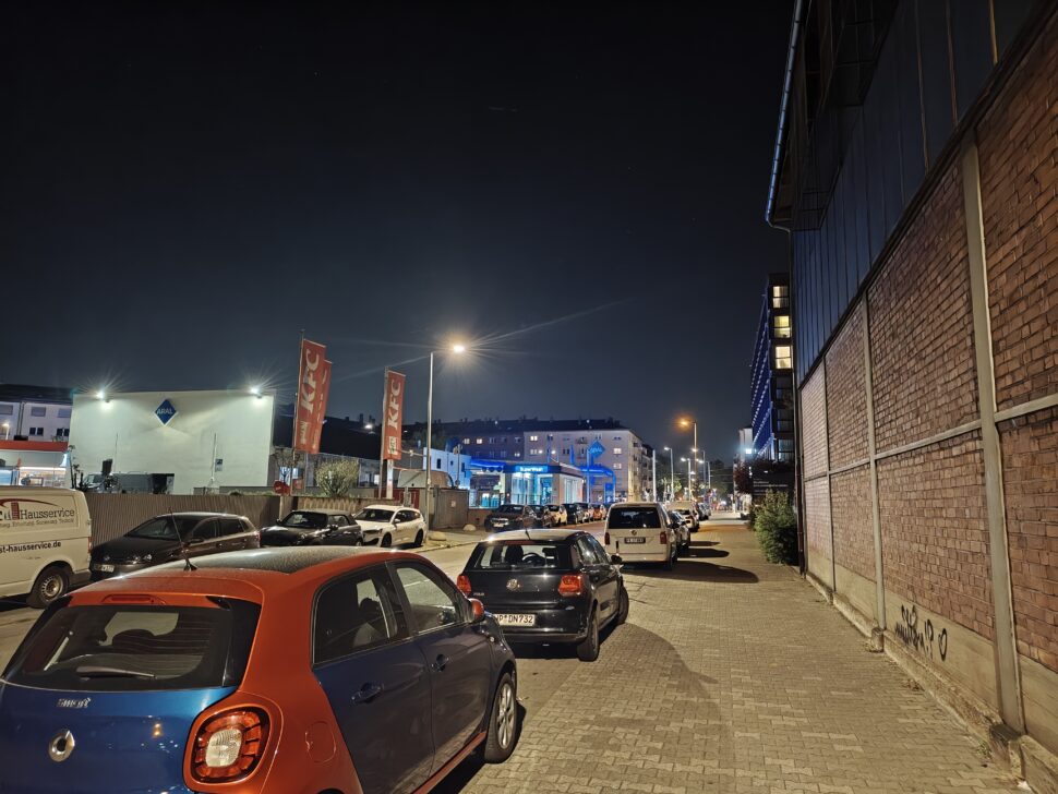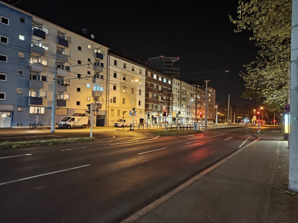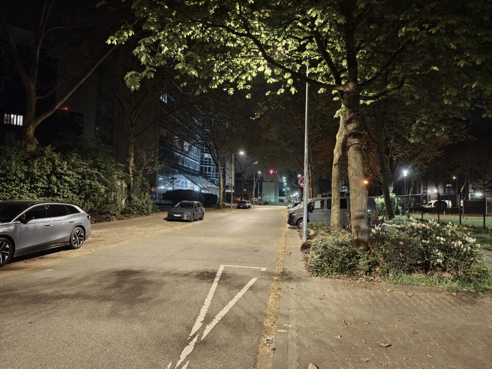 In der Nacht aktiviert das Realme 16 Pro+ automatisch den Nachtmodus und passt die Belichtungszeiten an. Dank verbautem OIS gelingen trotz langer Belichtungszeit scharfe Aufnahmen und die Software erstellt aus den Bildinformationen hervorragende Ergebnisse. Der Dynamikumfang sowie die Schärfe sind überzeugend. Die verschiedenen Lichtquellen bereiten dem Smartphone keine Probleme. Bildrauschen wird gut eliminiert.
