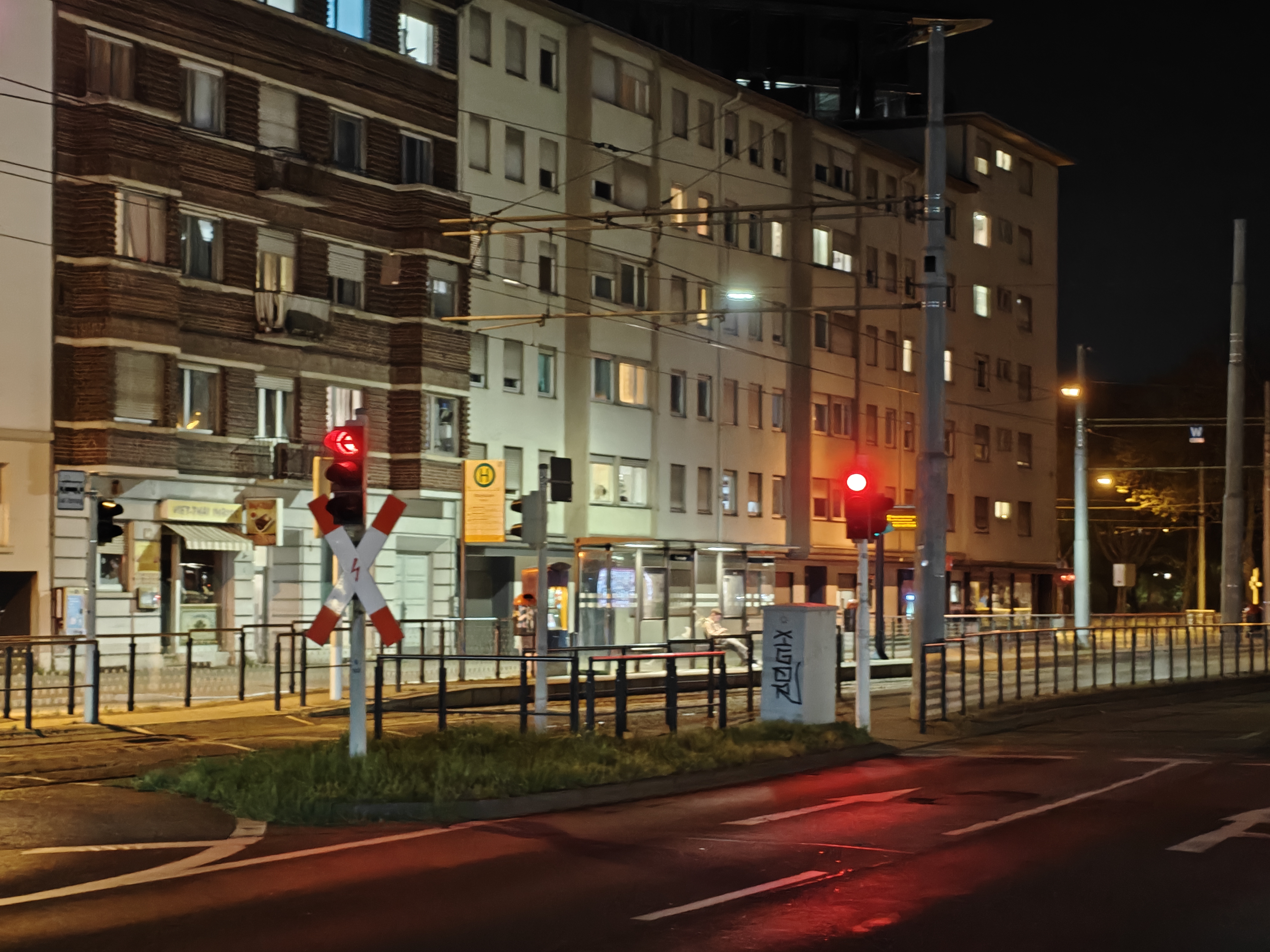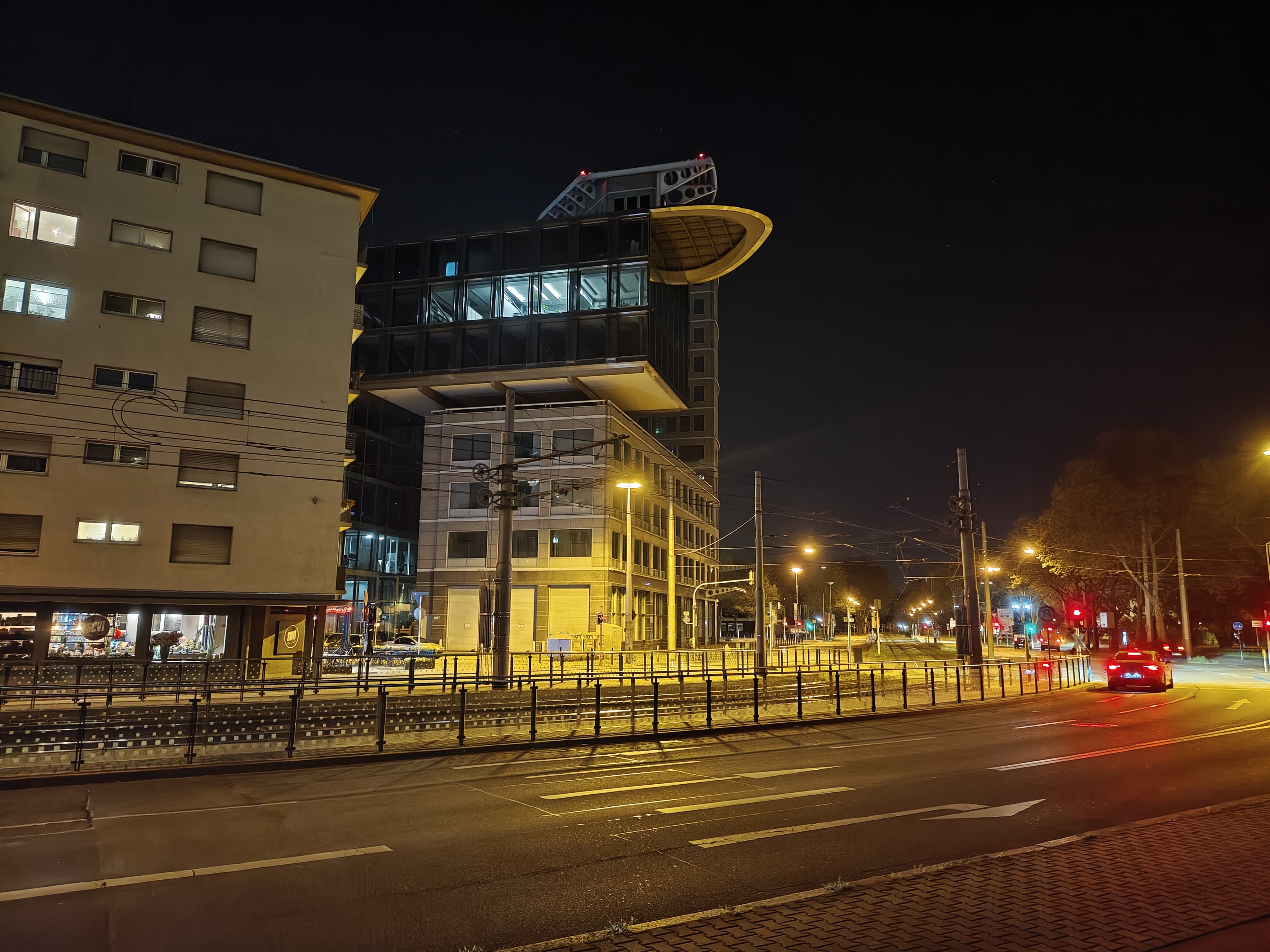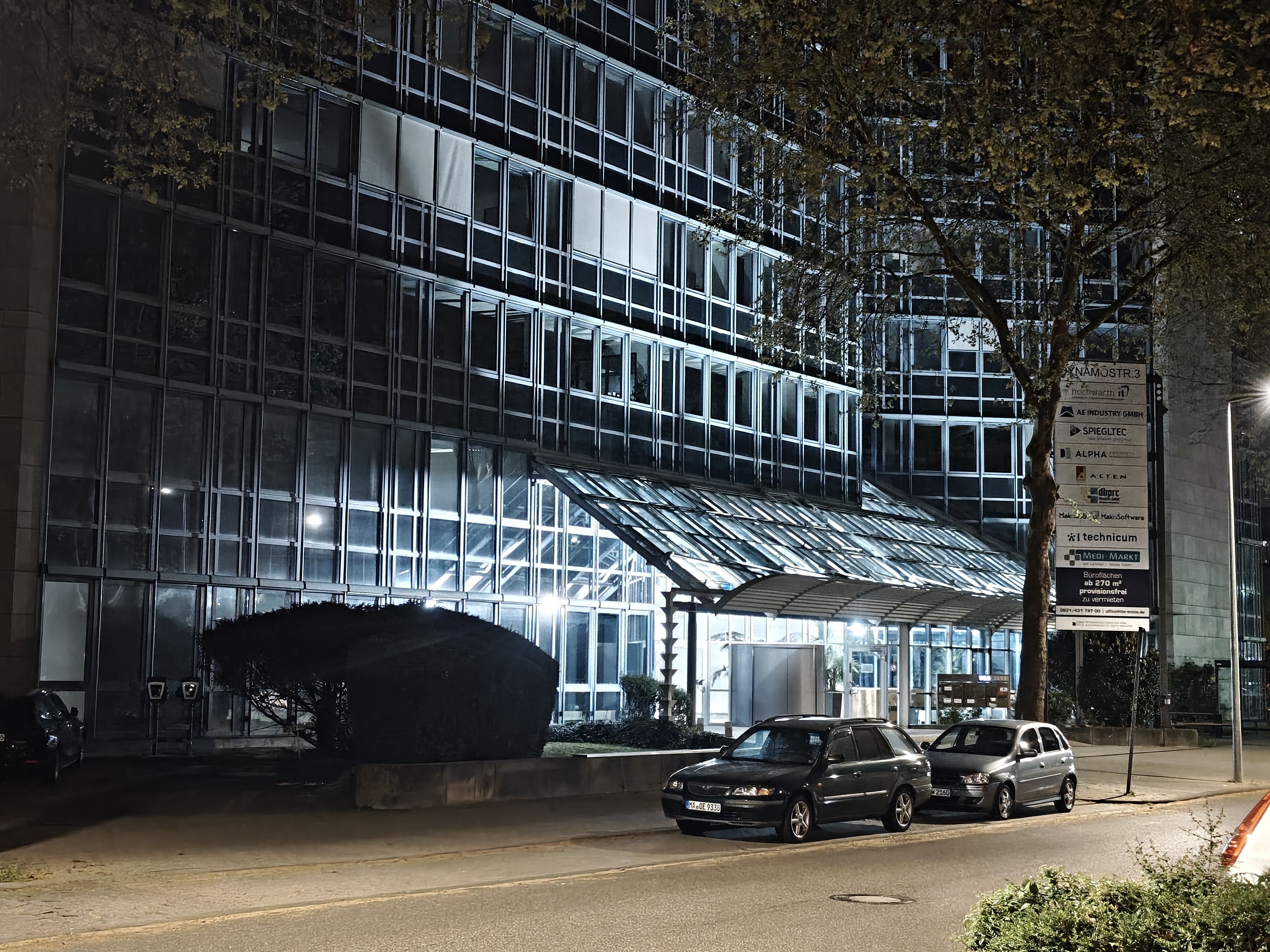 In der Nacht aktiviert das Realme 16 Pro+ automatisch den Nachtmodus und passt die Belichtungszeiten an. Dank verbautem OIS gelingen trotz langer Belichtungszeit scharfe Aufnahmen und die Software erstellt aus den Bildinformationen hervorragende Ergebnisse. Der Dynamikumfang sowie die Schärfe sind überzeugend. Die verschiedenen Lichtquellen bereiten dem Smartphone keine Probleme. Bildrauschen wird gut eliminiert.