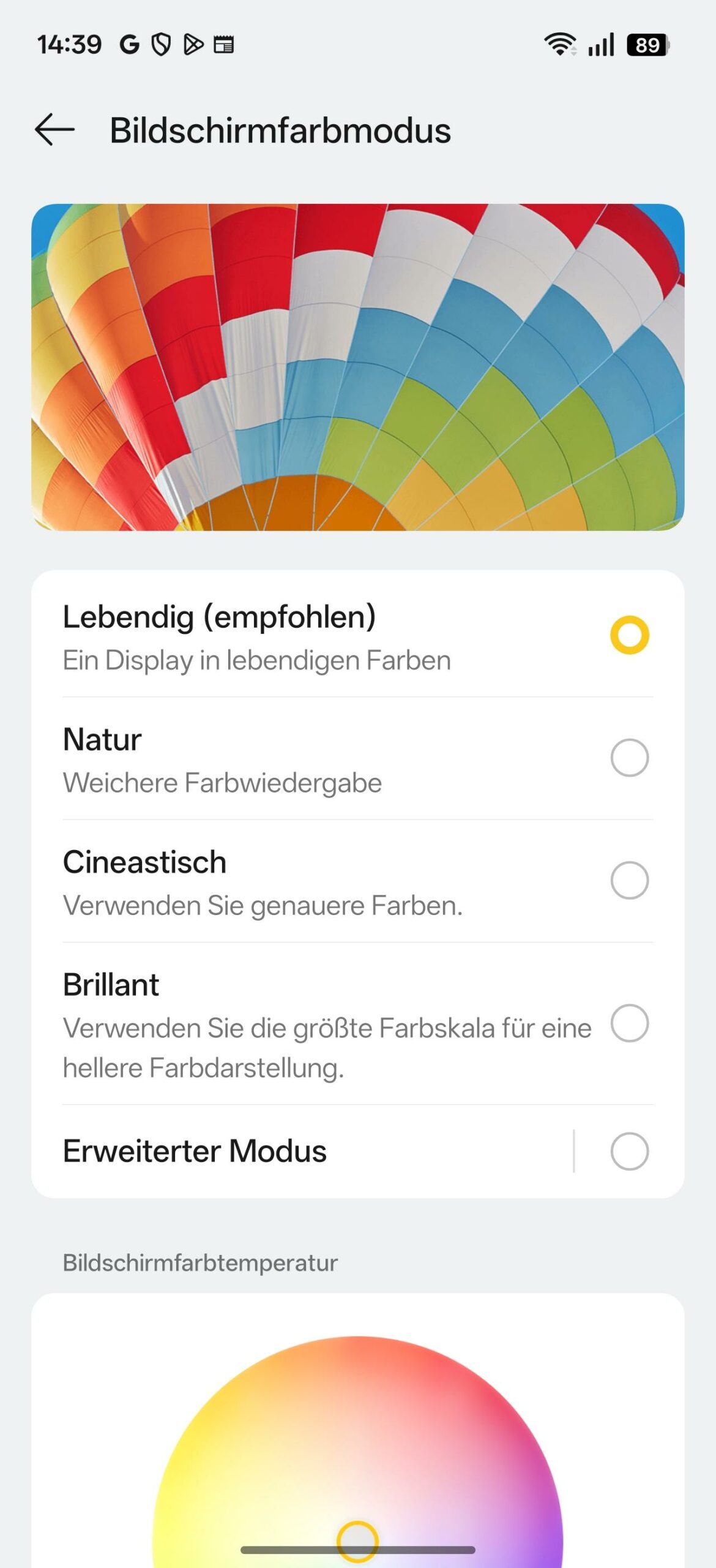 Das verbaute Panel überzeugt durch technologiebedingte Stärken wie einen extrem hohen Kontrast und eine gute Blickwinkelstabilität. Die Farbdarstellung ist werkseitig kräftig abgestimmt, lässt sich jedoch softwareseitig individuell kalibrieren. Ergänzende Funktionen wie ein automatischer Dunkelmodus und ein Nachtmodus zur Blaulichtreduktion sind integriert. Technisch deckt das 10-Bit-Display den DCI-P3-Farbraum vollständig ab; zudem werden die HDR-Standards HDR10+ und HLG unterstützt, was die Qualität der Videowiedergabe unterstreicht. Selbstverständlich wird Widevine Level 1 unterstützt. Die hohe PWM-Frequenz von maximal 4608Hz freut alle empfindlichen Augen.