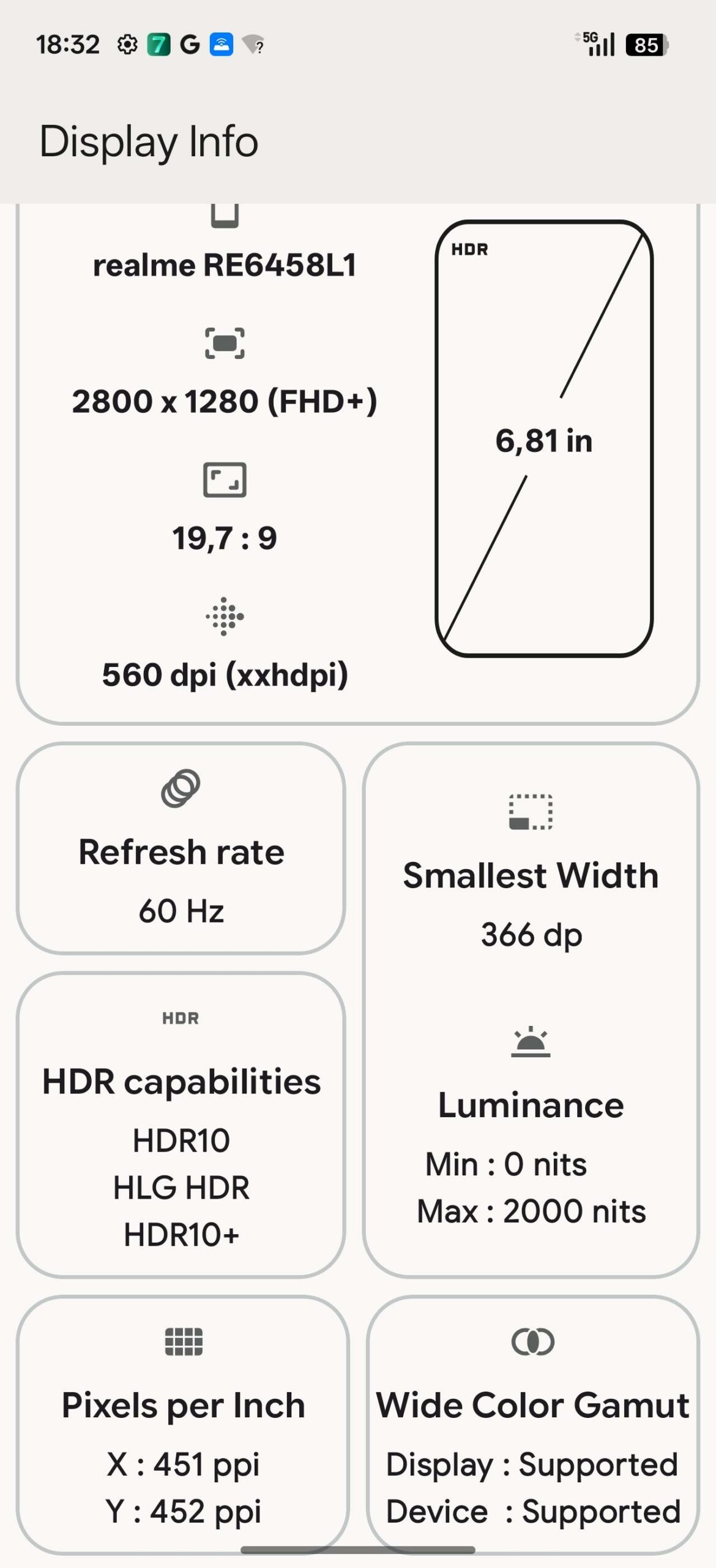 Das 6,8 Zoll große Display des Realme 16 Pro+ kann nur bedingt überzeugen. Zwar kommt ein modernes AMOLED-Display mit einer maximalen Bildwiederholungsrate von 144Hz zum Einsatz, aber die maximale Helligkeit ist mit gemessenen 1484 Lux ein wenig mager, insbesondere da die Anzeige stark spiegelt. Es lassen sich Inhalte vom Bildschirm ablesen, aber nicht so komfortabel wie bei der Konkurrenz. Tadellos ist dagegen die Auflösung von 2800 x 1280 Pixel oder 2363 x 1080 Pixel, falls ihr die Akkulaufzeit verlängern möchtet. Bei 452 respektive 381 Pixel pro Zoll lassen sich keine einzelnen Pixel mehr ausmachen.