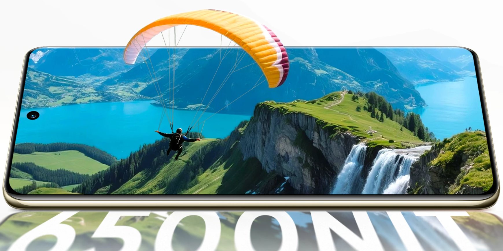 Die Front dominiert ein an den Kanten leicht abgerundetes 6,8 Zoll AMOLED-Panel. Die Auflösung beträgt 2800 x 1280 Pixel (Full-HD+). Für Gamer ist die hohe Bildwiederholrate von 144Hz relevant, die für super flüssige Bewegungen sorgt. Realme gibt eine lokale Spitzenhelligkeit von bis zu 6.500 Lux an (APL), im normalen Modus erreicht das Panel bis zu 1.000 Lux. Geschützt wird die Front durch Corning Gorilla Glass 7i. Ein optischer Fingerabdrucksensor sitzt im Display.