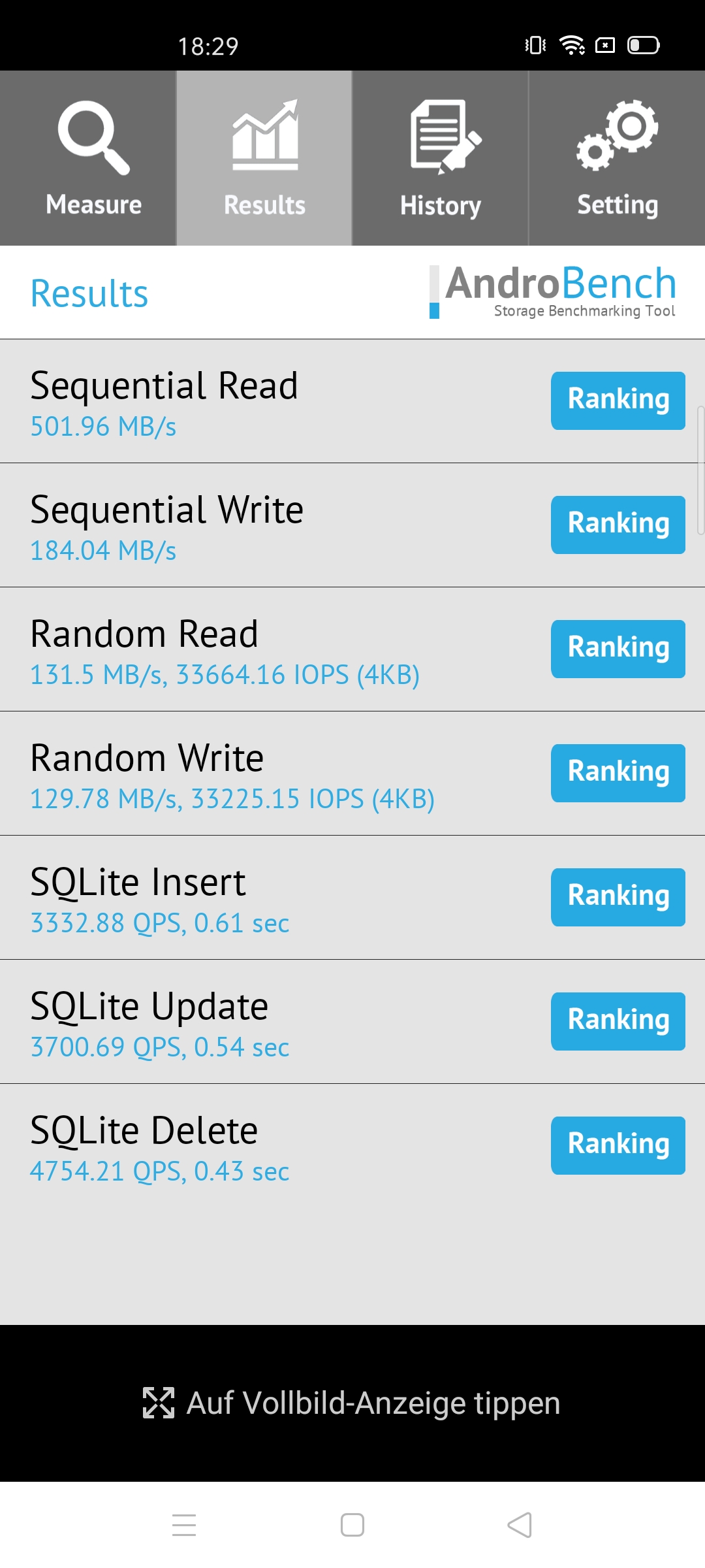 An Speicherkonfigurationen gibt es 6/64GB, 6/128GB und 8/128GB. Es handelt sich bei dem Speicher um schnellen UFS 2.1 mit 500MB/s Lese- und 180MB/s Schreibgeschwindigkeit.