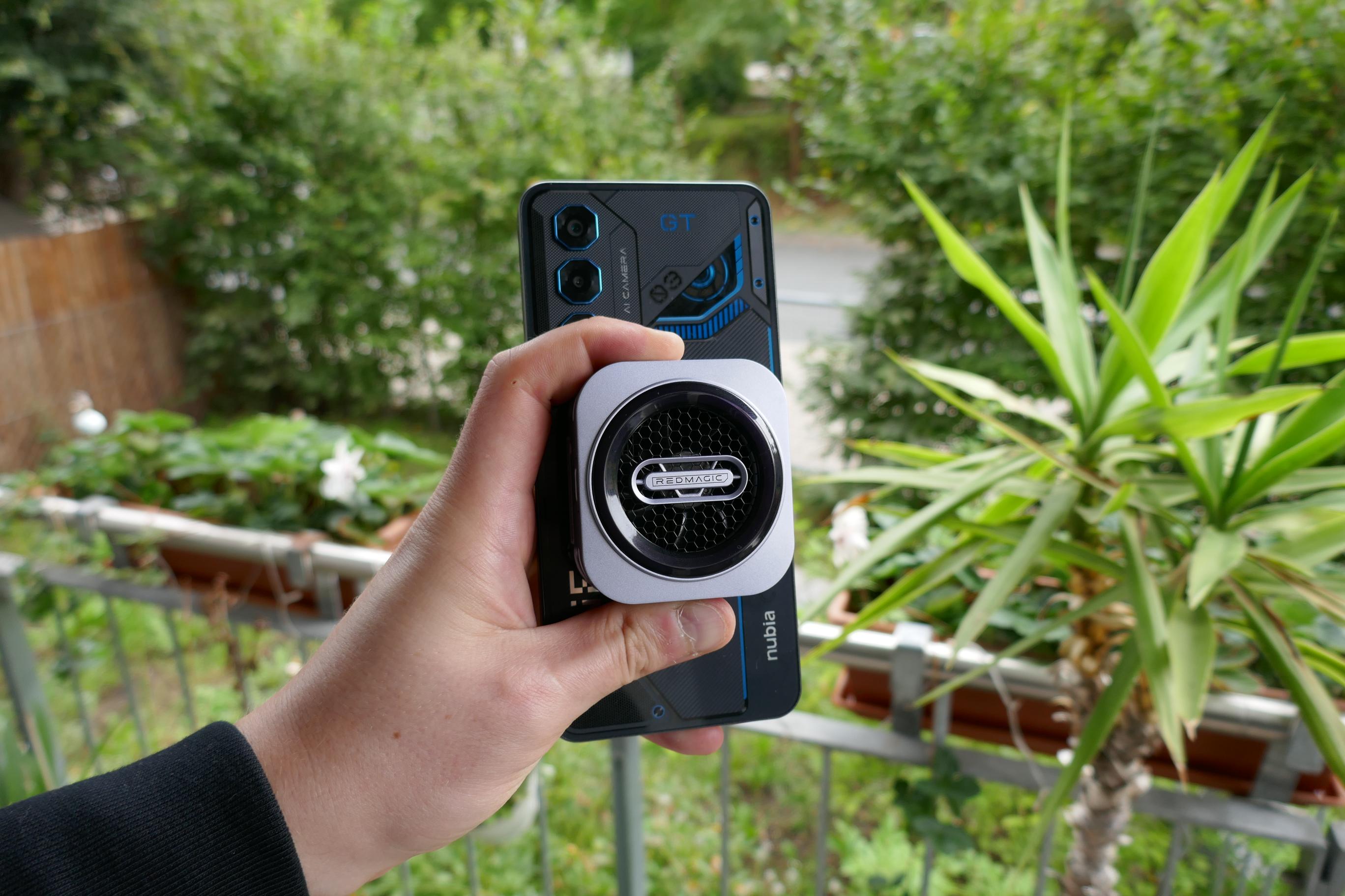 Für den Test haben wir verschiedene Benchmarks zweimal durchlaufen lassen: einmal ohne und nach einer kurzen Abkühlphase noch einmal mit Kühler. Den RedMagic Cooler 6 Pro haben wir dabei so nah wie möglich am Prozessor positioniert. Beim Nubia Neo 3 GT 5G ist das neben dem Kameramodul, beim Z60 Ultra direkt unterhalb des Kamerahügels. Der Lüfter läuft für den Test auf maximaler Leistung, die RedMagic mit bis zu 30 Watt angibt.
