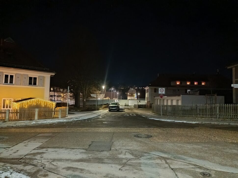 Bei Nacht wird der günstige Preis des Telefons etwas mehr zu einem Problem, denn ohne OIS ist die Belichtungszeit begrenzt. Für ein Budget-Modell sind die Aufnahmen bei Nacht aber auch solide, wobei der Unterschied zu einem Topmodell in Situationen mit extrem schwachem Licht dann eklatant wird.
