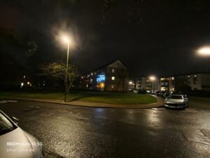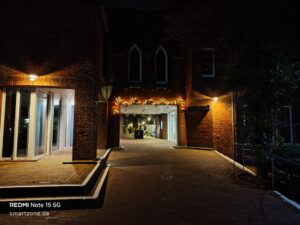 Dank optischer Stabilisierung muss sich das Redmi Note 15 5G auch in der Nacht nicht verstecken. Die Aufnahmen sind bei genügend Kunstlicht brauchbar. Externe Lichtquellen bringen das Smartphone nicht aus dem Takt und es wird eine gute Schärfe geboten. Daher sind auch Details zu erkennen, ebenso wie eine gute Dynamik. Bildrauschen wird weitestgehend vermieden, genauso wie Unschärfe. Wie schon am Tag arbeitet der Autofokus hervorragend.